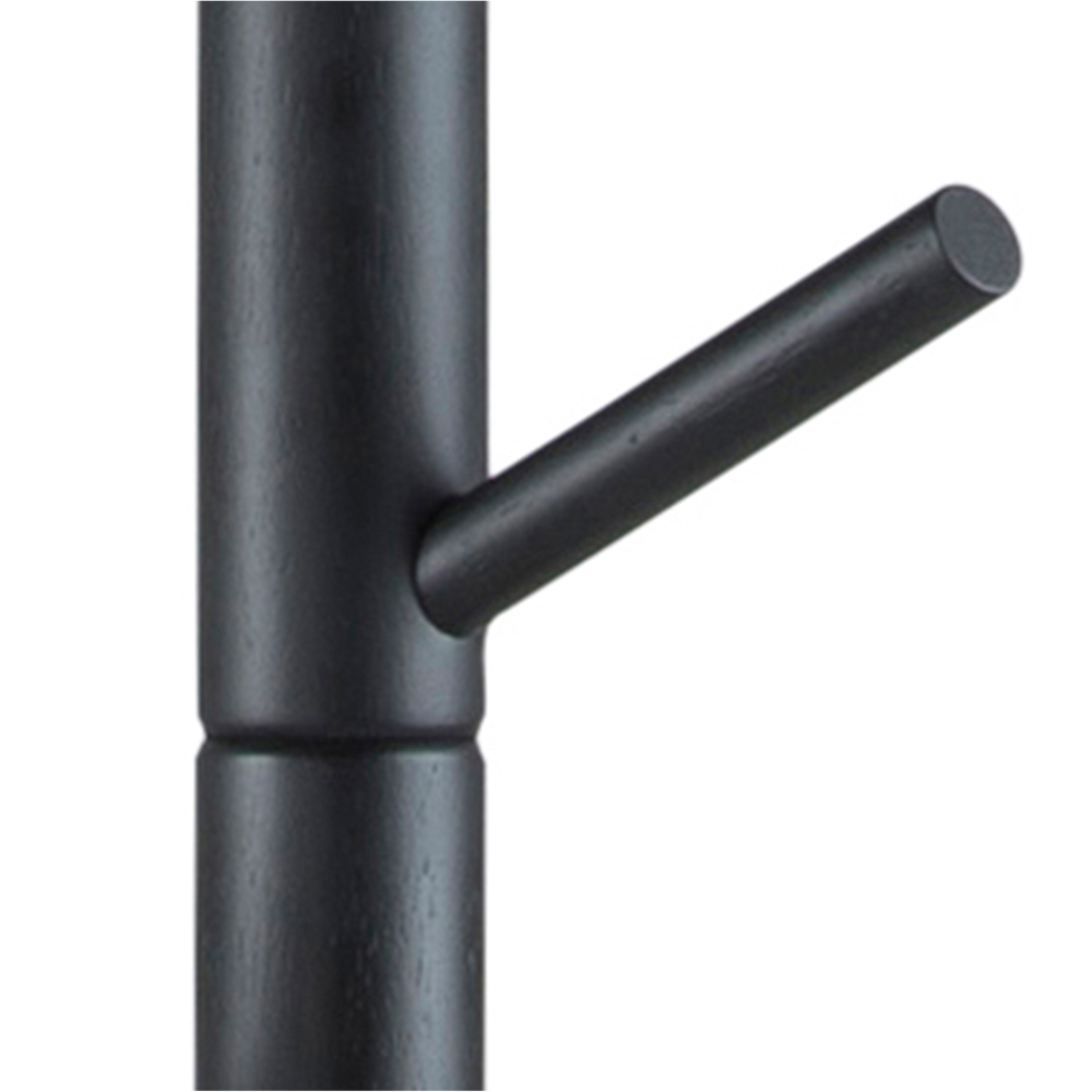 Welcome a touch of modern sophistication with the Bremen coat hanger, boasting a bold black NC lacquered rubberwood frame and base, complemented by unique asymmetrical details for a chic organisational solution.