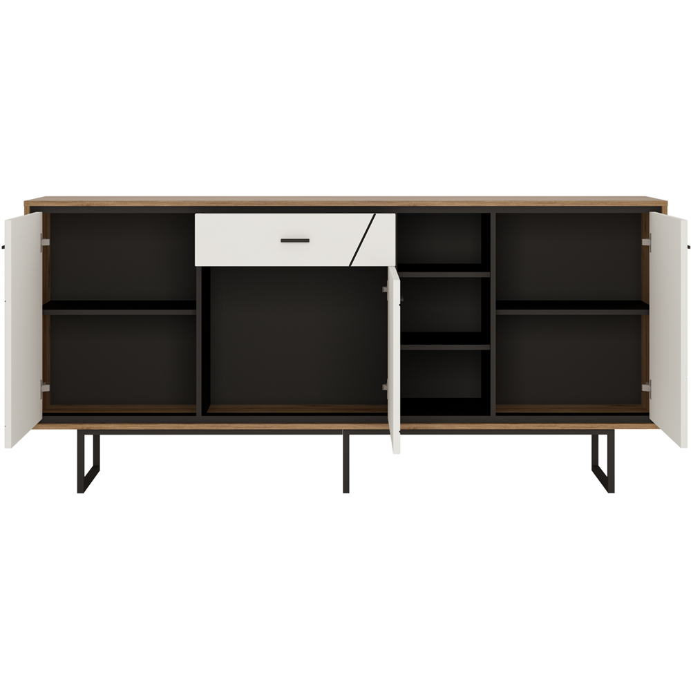 Florence Brolo 3 Doors Single Drawer 3 Shelf Walnut Dark Panel Wide Sideboard