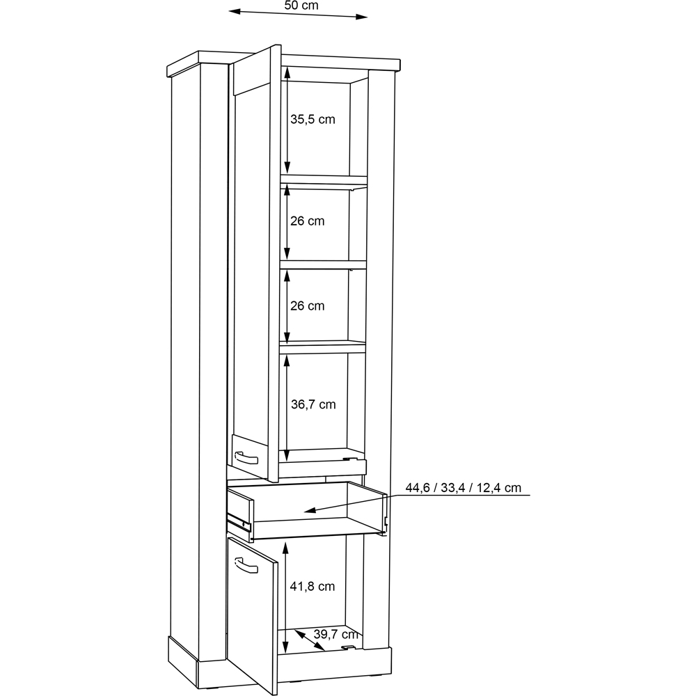 Discover the captivating allure of the Corona Display Cabinet, where practicality meets sophistication. This cabinet is excellent if you are looking to build or find storage solutions for your home, providing secure and stylish storage solutions with high-quality furniture. With its high-quality craftsmanship and traditional design, the furniture features a light artisan oak effect and includes one glass door and one door.