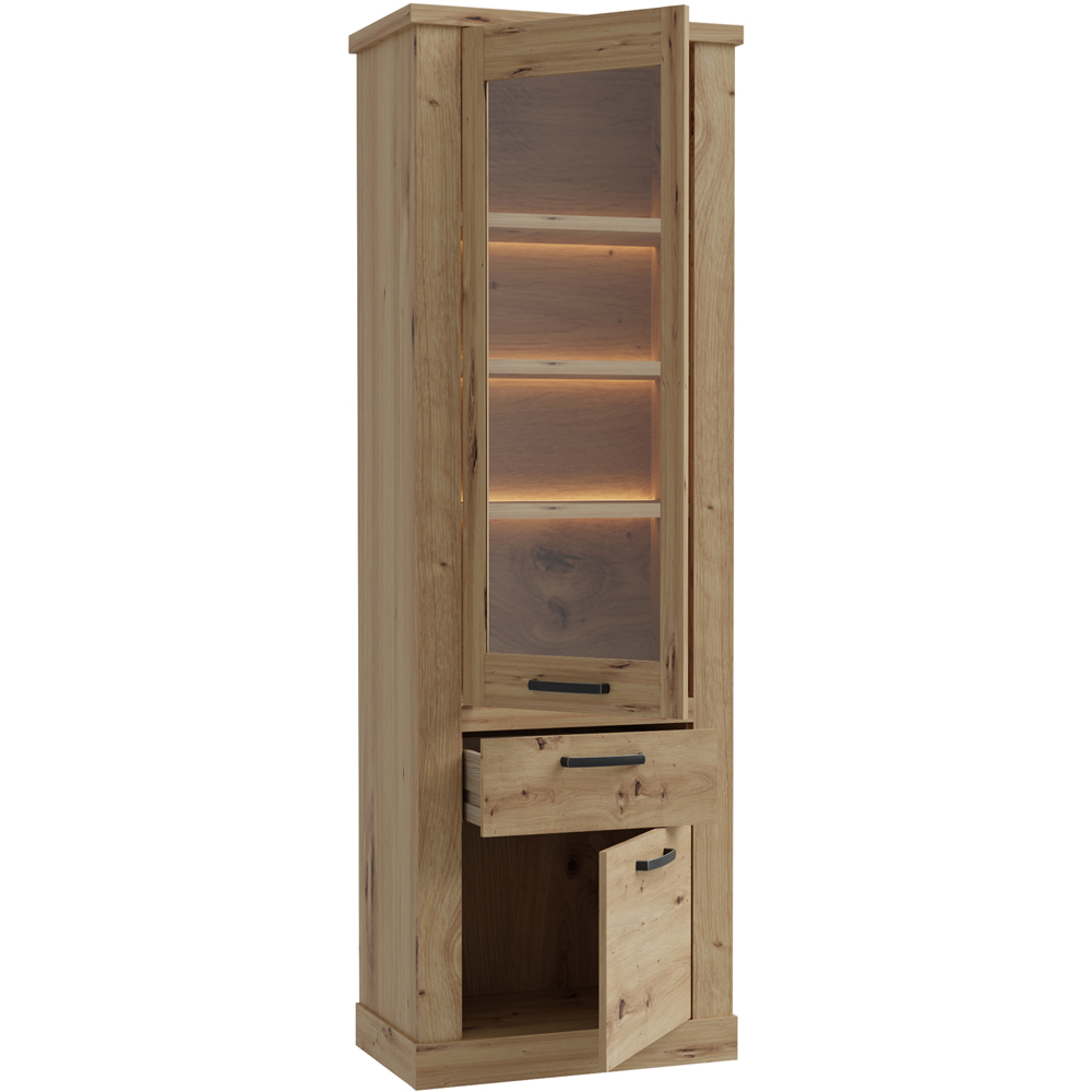 Florence Corona 2 Door Single Drawer Artisan Oak Narrow Display Cabinet