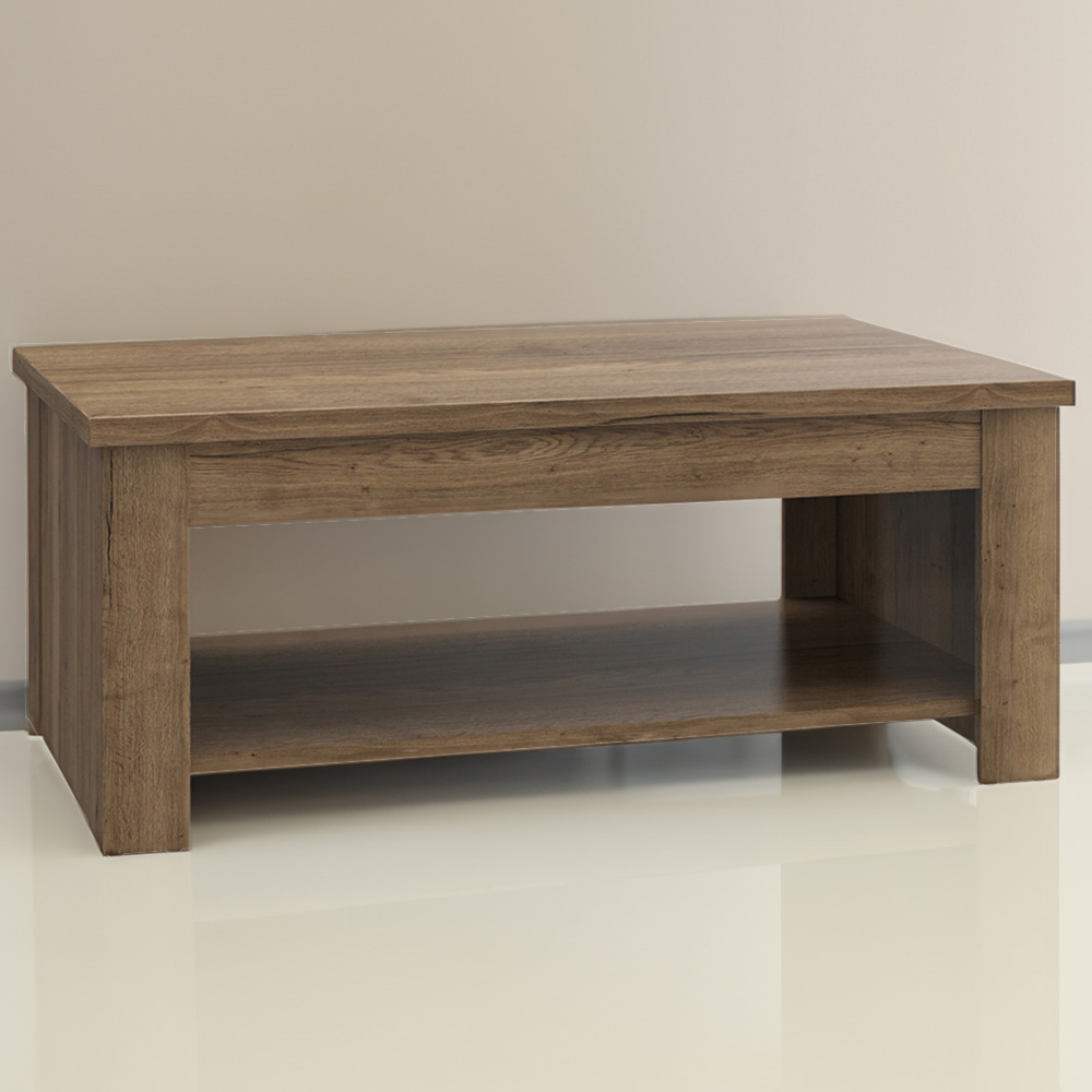 Uplift your home decor in a classy way with this Corona Rising Coffee Table by Furniture To Go. This coffee table features a traditional design which can go with any type of home interior. It has a functional feature that can raise it to a maximum height of 91cm. With its dark, warm Tabak oak effect, this coffee table can be the perfect choice to add an eye-catching piece to your interior. Made from solid oak, it can upgrade your decor.
