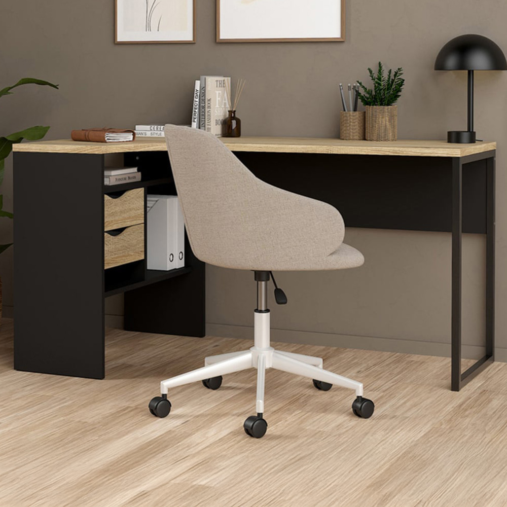 Florence Function Plus 2 Drawer Corner Desk Matt Black and Oak