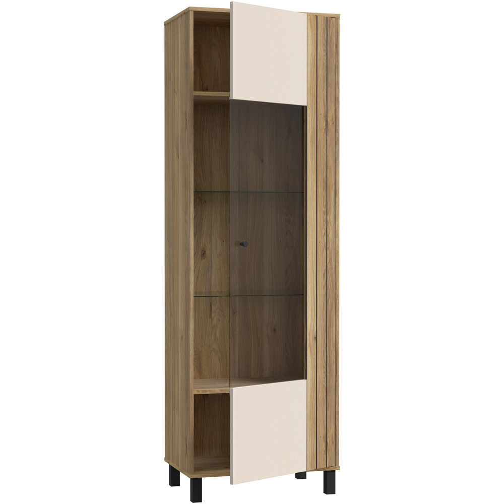 Florence Grafton Single Door Cream and Oak Glass Display Cabinet