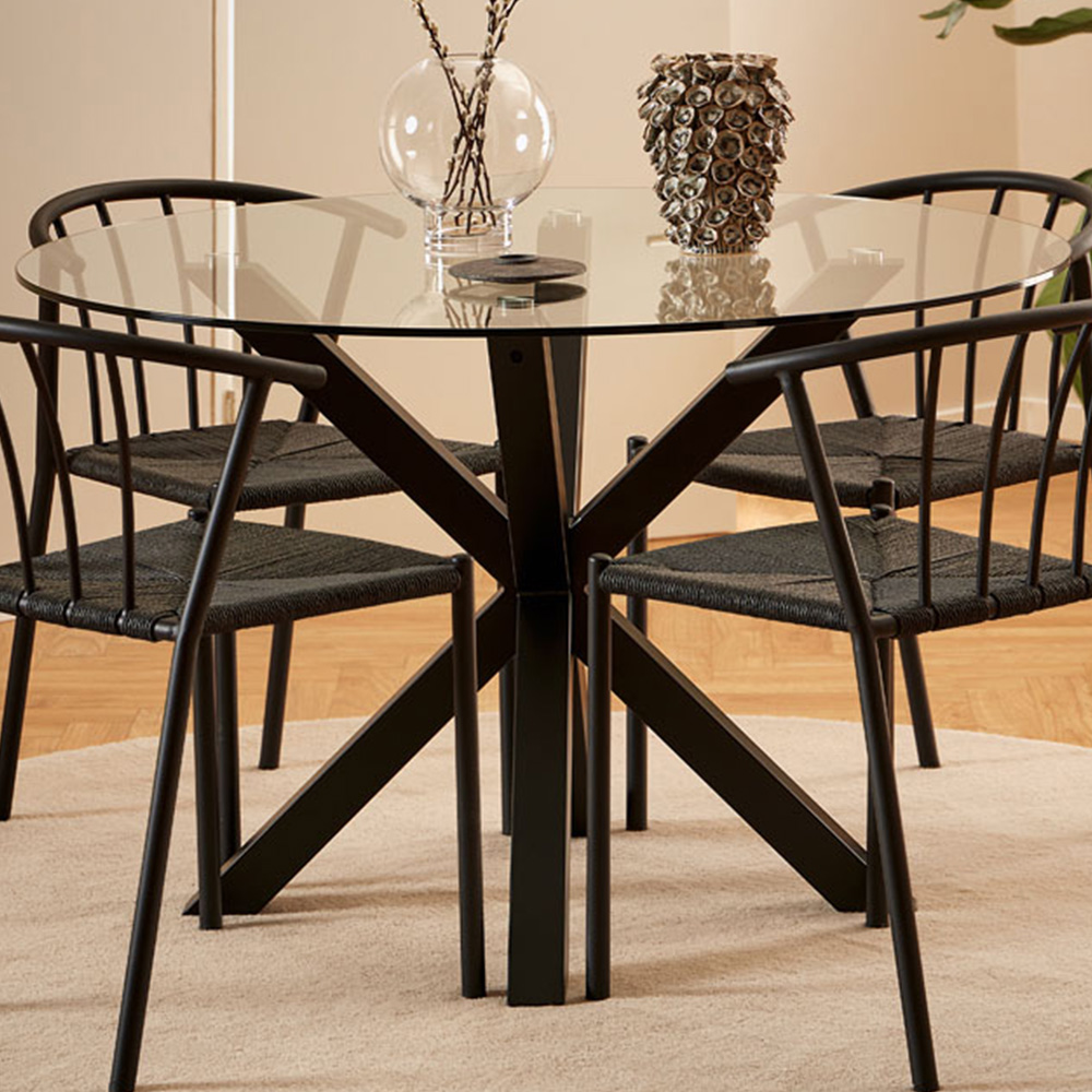 Florence Heaven Clear Glass Round 4 seater Dining Table Black