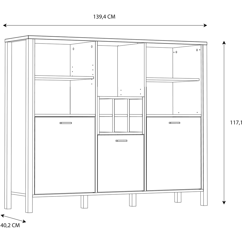 This Furniture To Go High Rock Shelf Unit features a contemporary design with a perfect blend of the Riviera oak decor with deep matt black accents. It has a three-door structure with shelves that offer a generous storage space. The sleek black metal handles add a touch of elegance, while the table boasts robust metal legs in a frame-like design, contributing to a distinct loft character within the space. Beyond its striking aesthetics, it prioritises functionality with its ingenious storage solutions. It effortlessly fits into any room, from the living room and dining area to the hall, youth room, or bedroom, adding a touch of sophistication and practicality to every corner of the home.