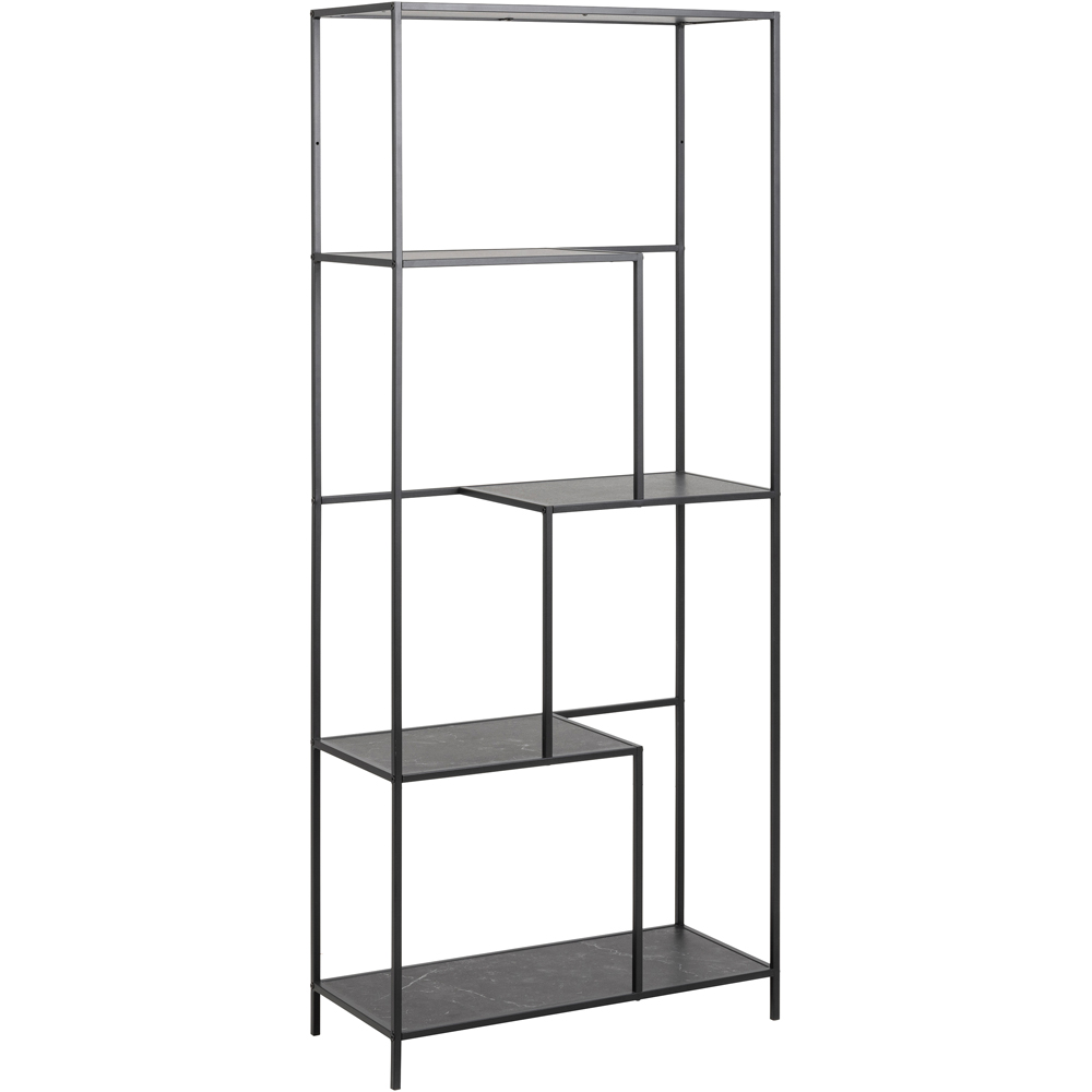 Florence Seaford 4 Shelf Oak and Black Metal Bookcase