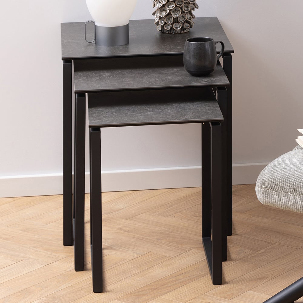 Florence Katrine Black Ceramic Nest of Tables Set of 3