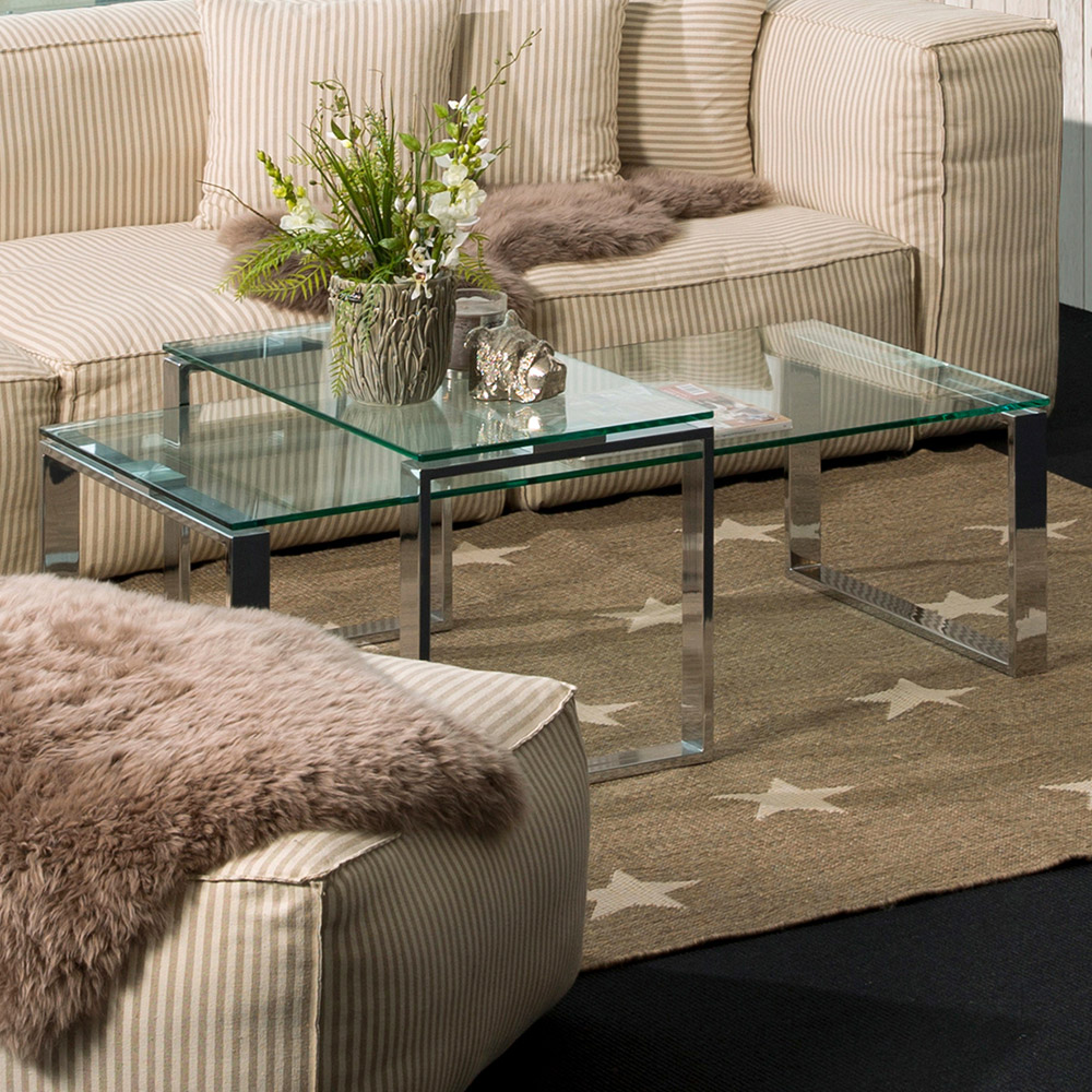 Upgrade your living space with an elegant coffee table set, which includes two pieces with a clear tempered glass top. The sleek chrome steel sledge base adds a contemporary and sophisticated touch to the design.