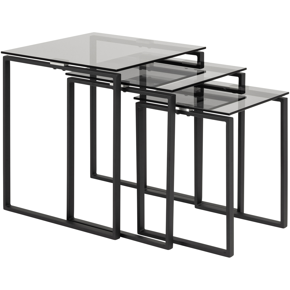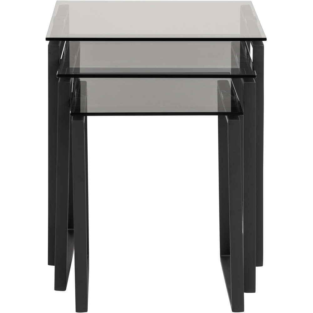 Discover the perfect blend of sophistication and durability with set of three nesting tables. The smoked tempered glass top and matte black powder-coated steel base offer a contemporary look that complements any decor.