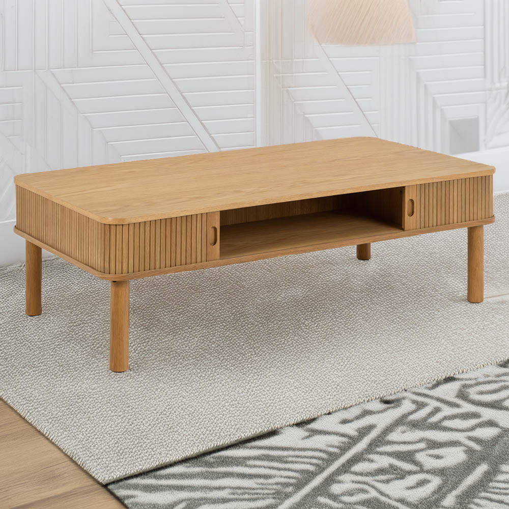 Florence Langley 3 Shelf Oak Coffee Table with Sliding Door