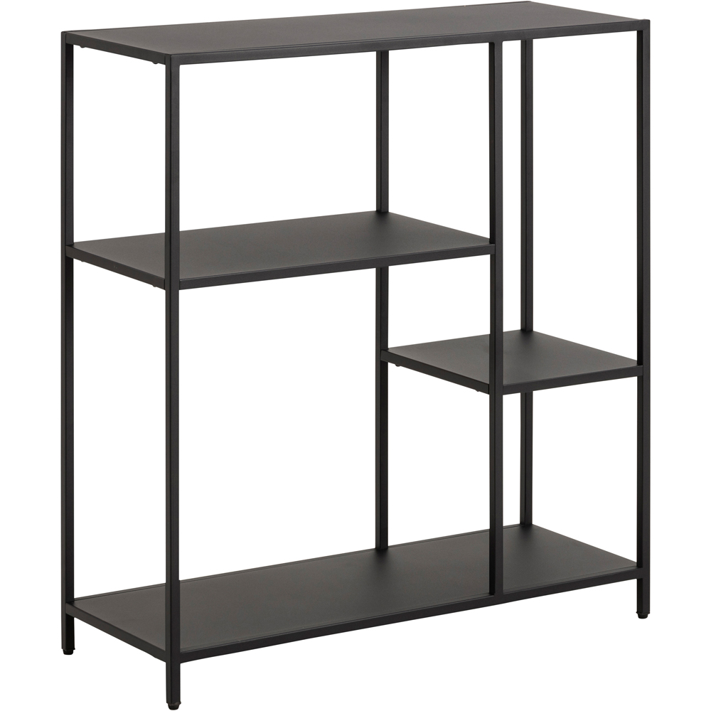 Introducing the Newcastle Bookcase—a stylish storage solution for your home. Crafted with a frame, 3 shelves, and base in matt black rough powder-coated steel, it exudes modern industrial charm. Featuring an asymmetrical detail, this 79.5x30x86 cm bookcase adds a contemporary touch to any room.
