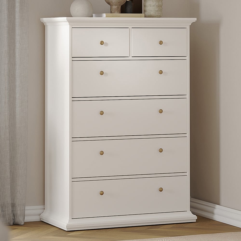 Florence Paris 6 Drawer White Chest of Drawers