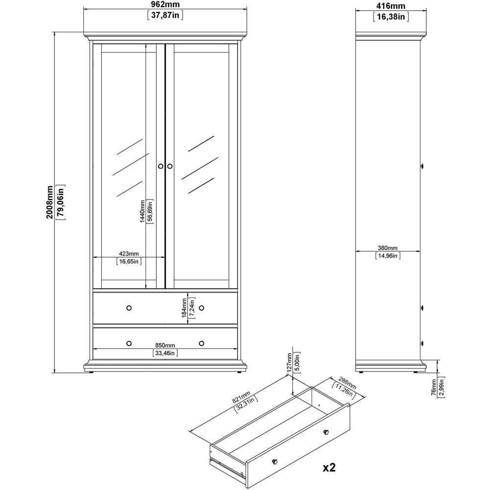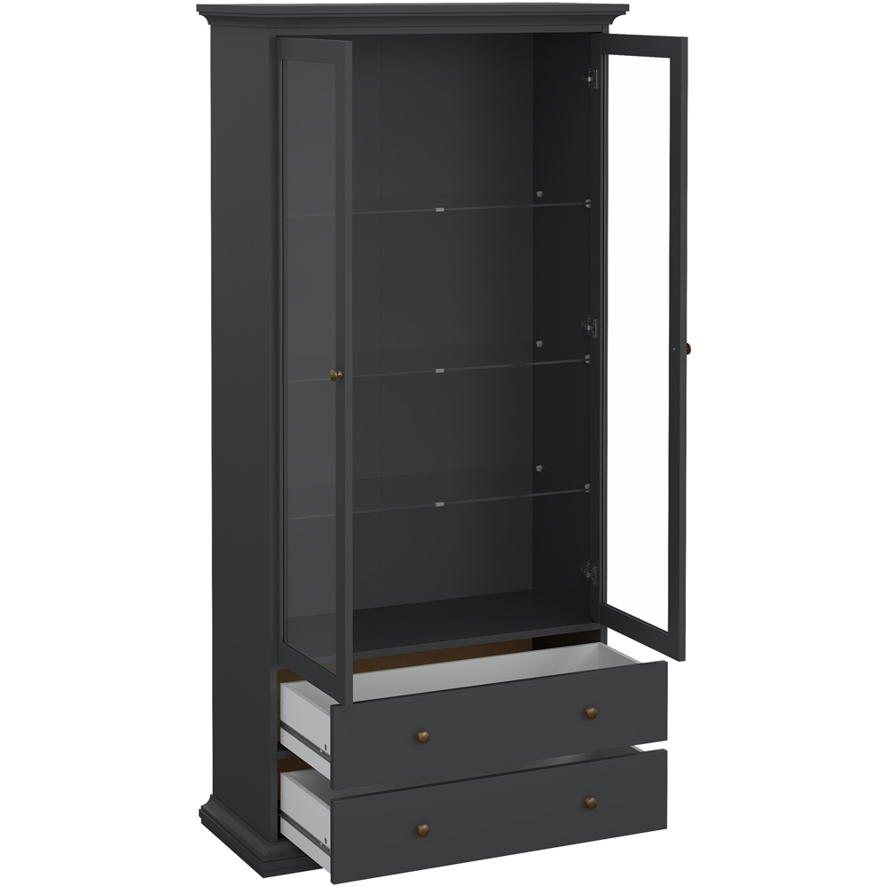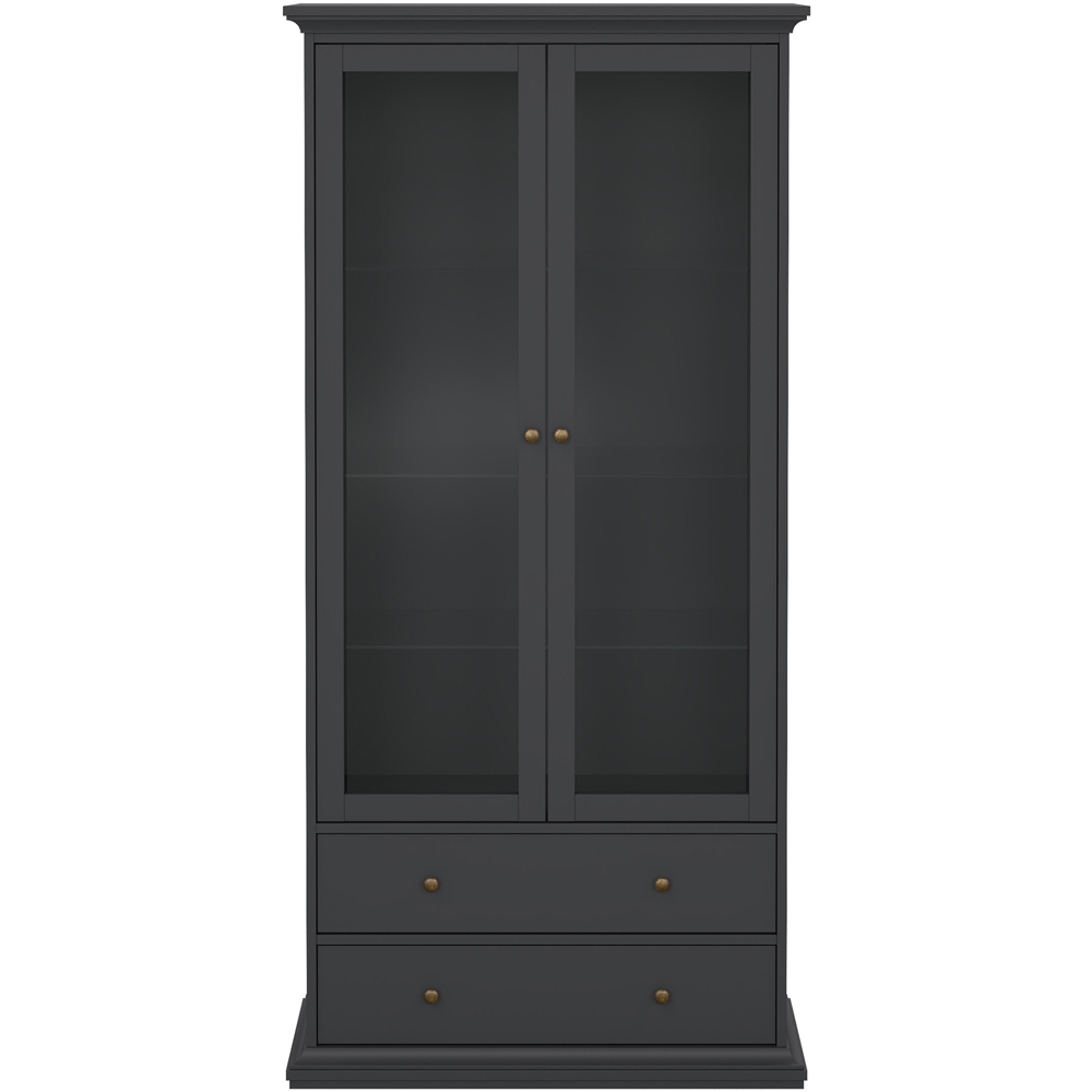 Elevate your decor with this Florence Paris 2-Door 2-Drawer China Cabinet. Finished in matt grey, this Paris unit lives up to its name with its romantic style, sophisticated look and beautiful classic feel. A perfect way to enhance your space, the cabinet is bold and offers plenty of storage options, with charm eluding from every angle. Also, both functional and stylish, this unit comes in a fade-resistant and easy-to-clean finish for added convenience. Plus, the high-quality laminated board is resistant to damage and scratches, moisture and high temperature. Weight capacity: Shelf: 10kg and Drawer: 7kg.
