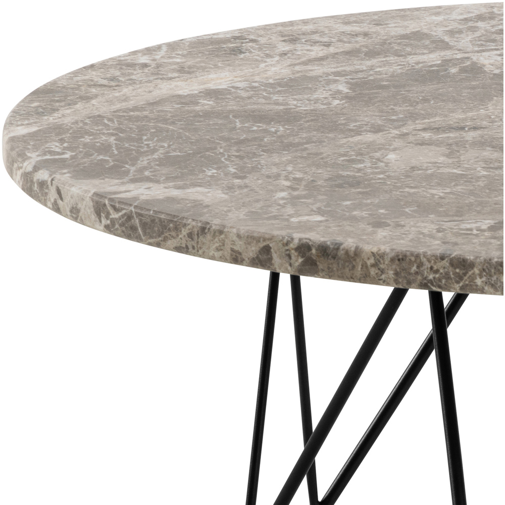 Transform your living space with the Prunus Round Coffee Table, the perfect mix of sleek Scandinavian minimalism and subtle luxury. Or picture it front and centre in your reading nook, effortlessly elevating the vibe while giving your treasured book stack a stylish home. The spider lacquered marble-effect top adds a touch of timeless sophistication, with unique veining that makes every table one of a kind. It’s the ideal spot for a flickering candle, a cup of tea, or even your go-to footrest. Supported by a sturdy black powder-coated steel base, it’s designed to be as durable as it is chic. Whether you're revamping your cosy corner or giving your home an upgrade that wows, this marble coffee table is the perfect blend of function and flair to suit your style.