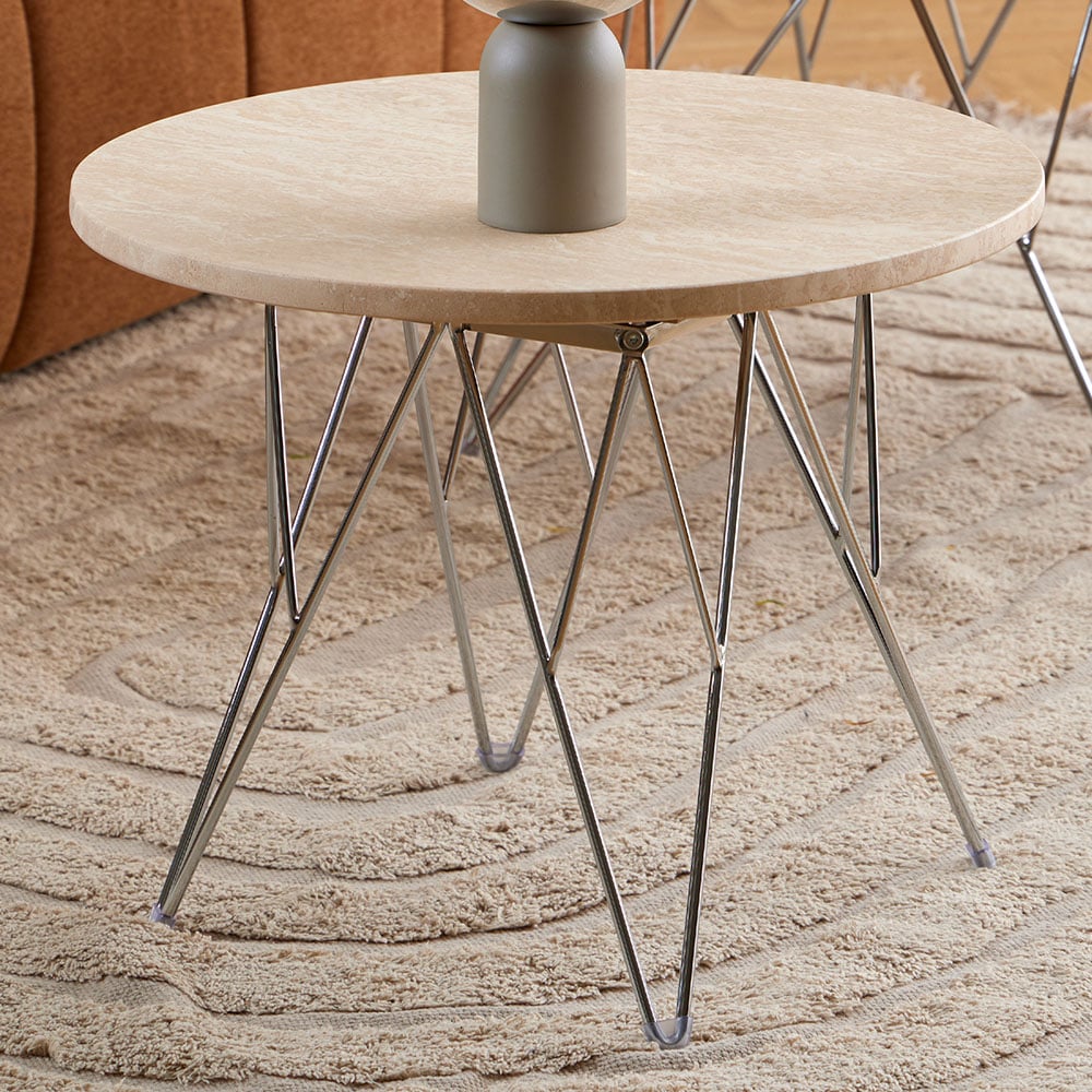 Transform your space with the Prunus round side table, a compact gem measuring 55cm in diameter and 41.4cm in height. Whether you’re styling a cosy reading nook or need an accent for a small apartment, this table proves that good things come in stylish packages. Picture it next to a plush tan boucle armchair on sleek wood flooring, bathed in natural light, or teamed with the matching 80cm coffee table with a different top or chrome steel legs from the Prunus collection. Designed with Scandinavian finesse by Nissens Tegnestue, it features a stunning matt beige travertine top that showcases understated luxury, paired with a powder-coated chrome wire base for that airy, modern look. No two tables are the same, thanks to the natural variations in the travertine stone’s unique beige tones. Whether you’re all about minimalist vibes or love a bold, eclectic aesthetic, the Prunus side table is the ultimate style sidekick your space deserves.