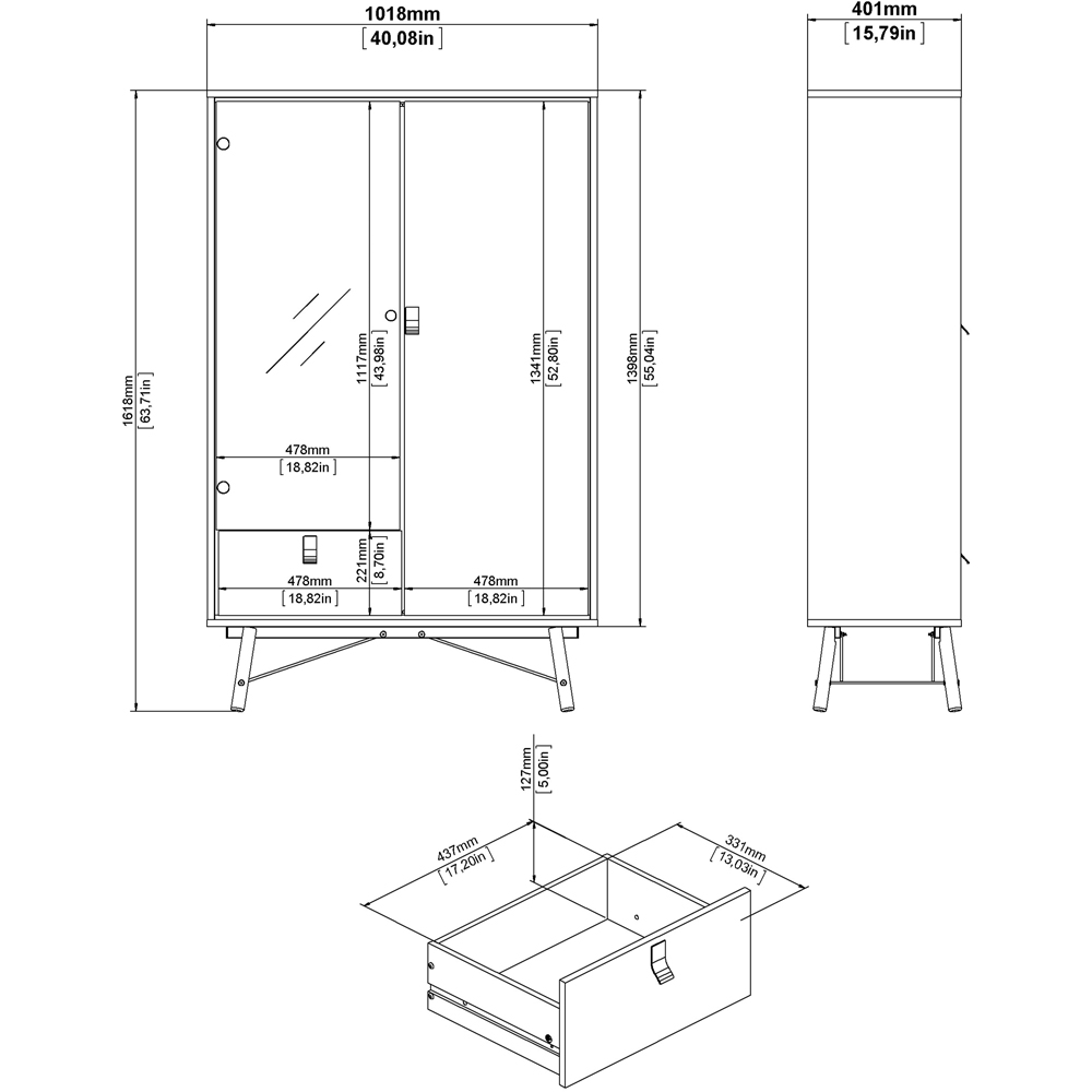 Florence Ry 2 Door Single Drawer Matt Black and Walnut China Cabinet