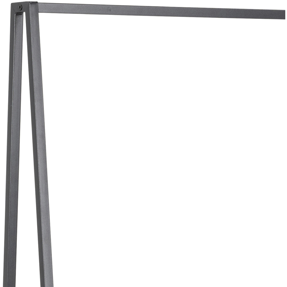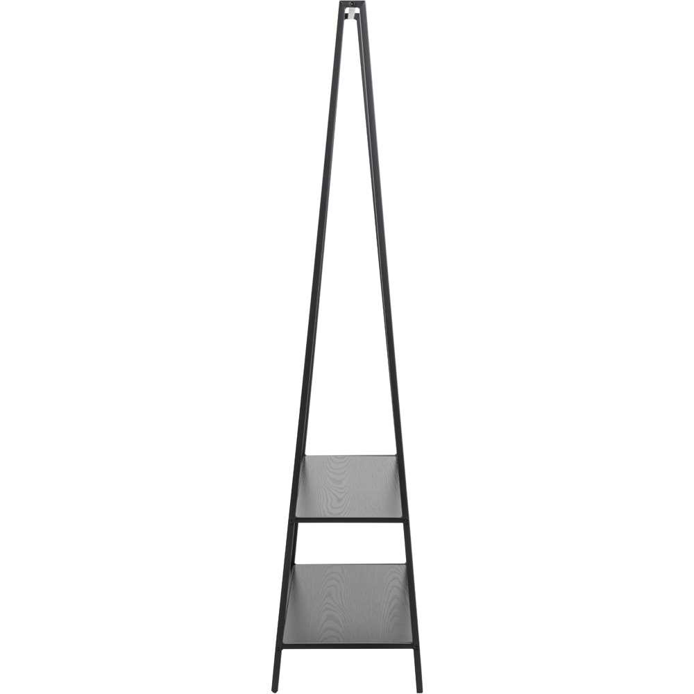 Enhance your space with this minimalist clothes rack, designed with a matte black steel frame and base. It features two ash black shelves and a clothes bar, providing a stylish and practical solution for your wardrobe needs.