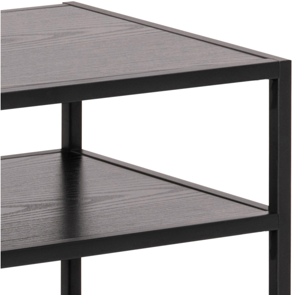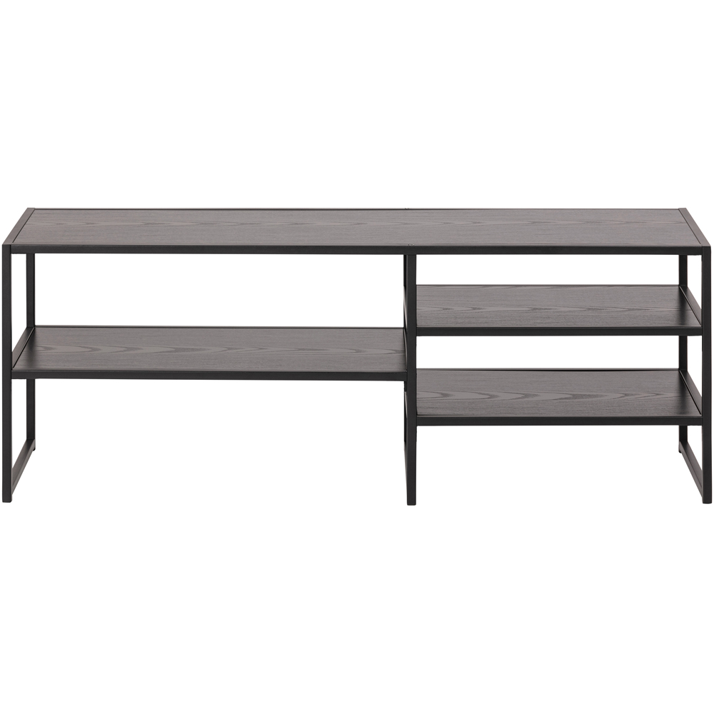 Craft a captivating centrepiece for your media room with our TV unit, showcasing a sleek ash black top and shelves, set against a matte black steel frame and base. The asymmetrical design adds a contemporary twist, making it a standout addition to any modern home.