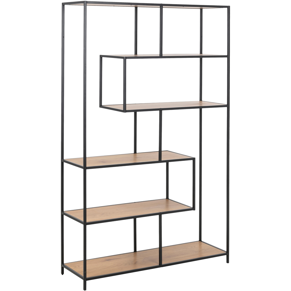 Florence Seaford 5 Shelf Oak and Black Metal Bookcase