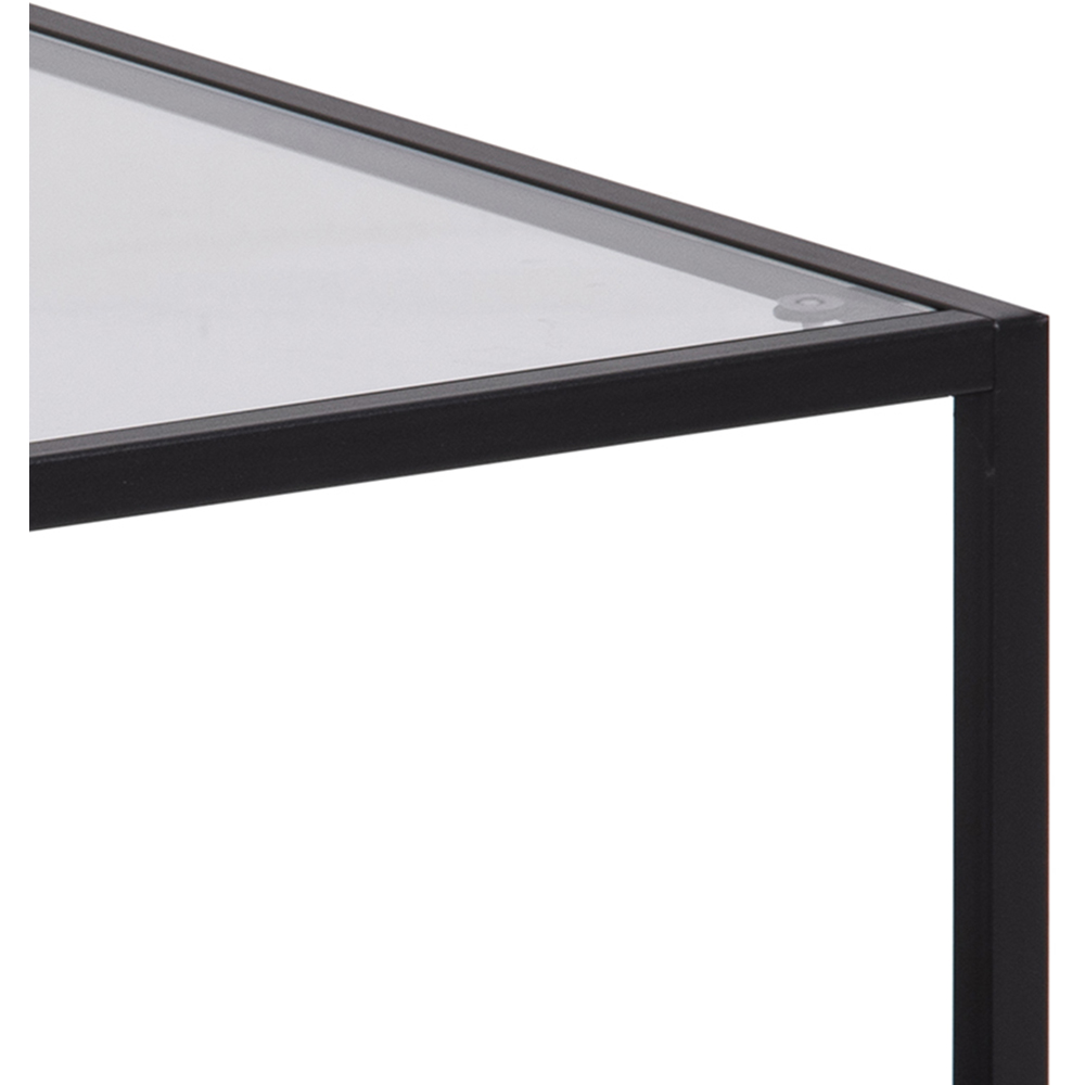 Discover the elegance of simplicity with our contemporary coffee table set. Featuring a sleek clear tempered glass top, complemented by a matte black steel frame and an ash black melamine shelf, this duo brings a touch of modern sophistication to any room without overwhelming the space.
