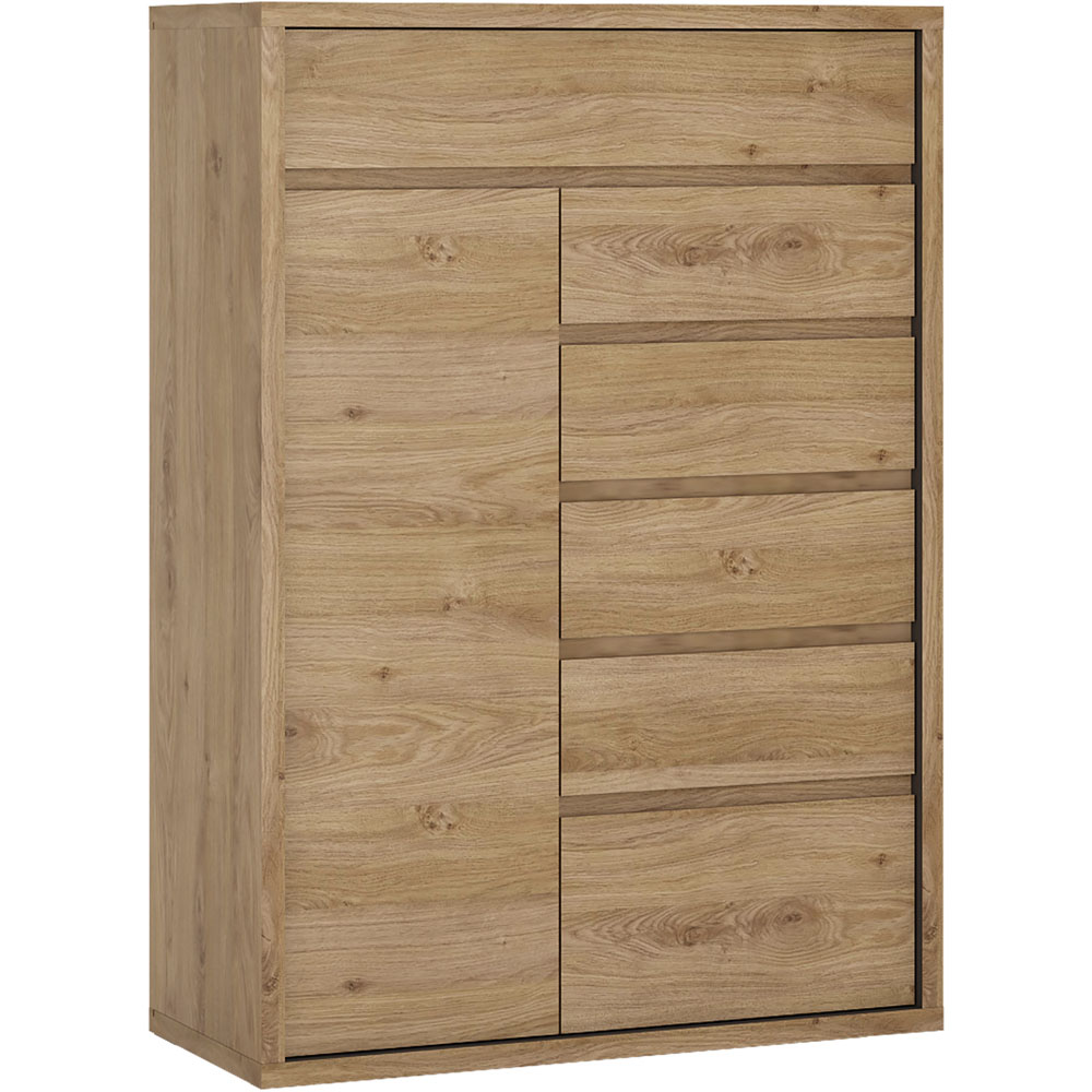 1 Door 6 drawer cupboard. Enchanting with its simple elegance. Ingenious shape complemented by elegant decor - a perfect marriage. This collection with sharp lines and a bold feeling, fills every living room space requirement.