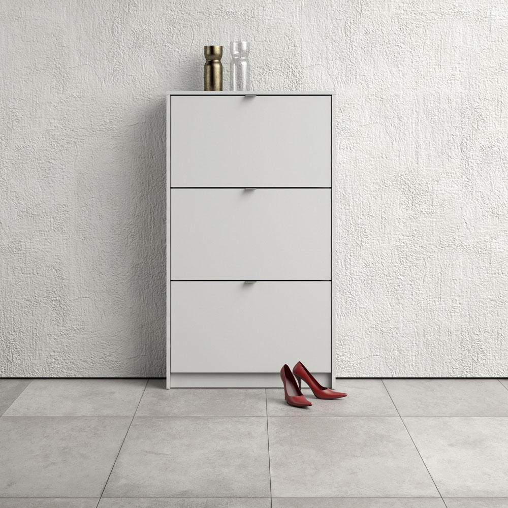 Florence Shoes 3 Flip Door Single Layer White Shoe Storage Cabinet
