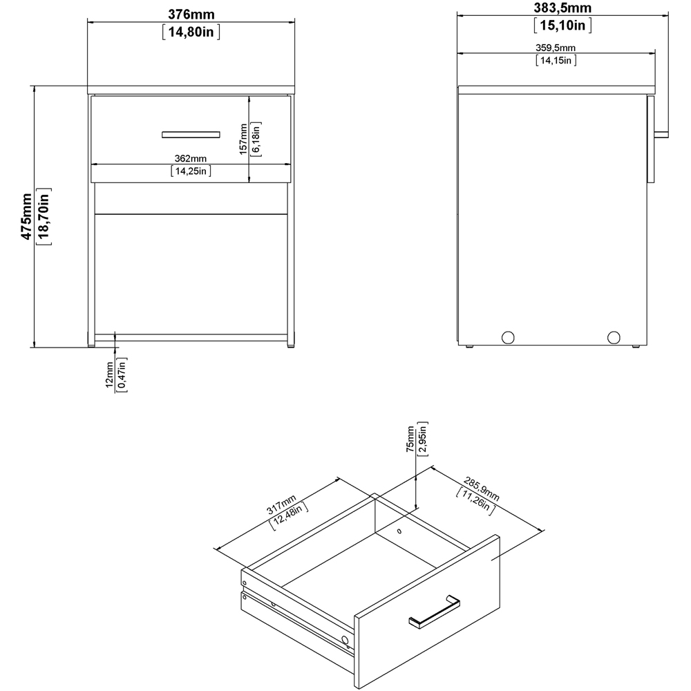 Florence Space Single Drawer White Bedside Table