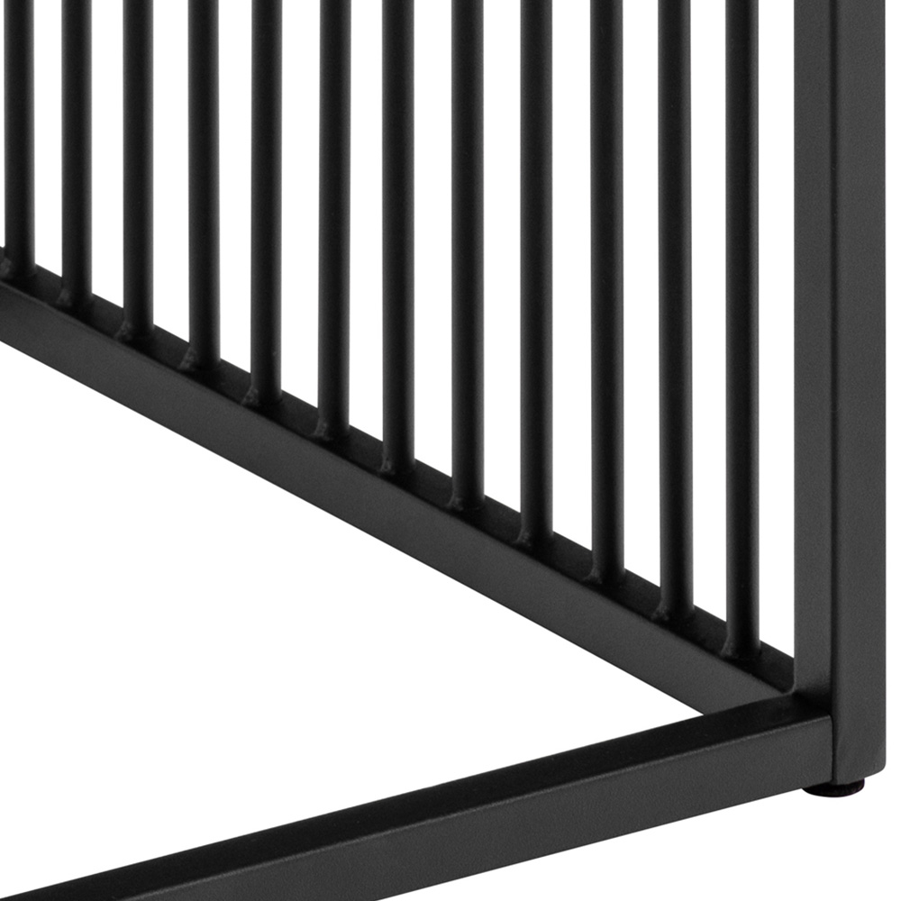 Complement your decor with this chic square side table, featuring a matt wild oak effect top and an industrial-style wire base in matte black steel. Its compact size and contemporary design make it a stylish and practical addition to any room.