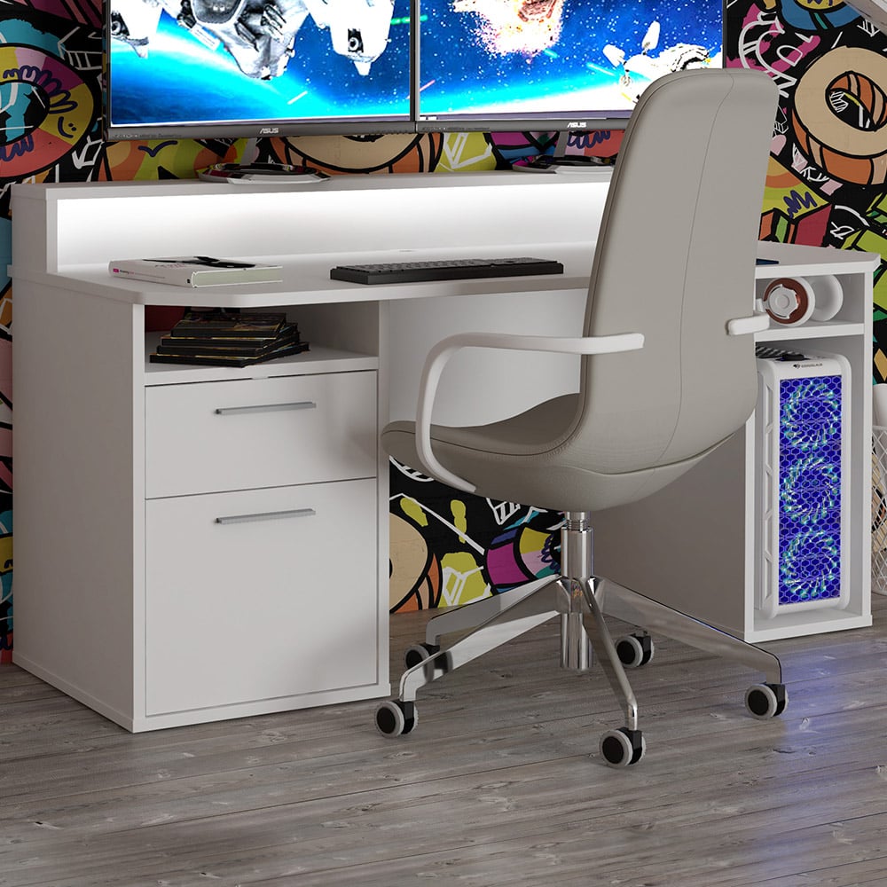 Bold, stylish, and designed to cater to every gaming enthusiast's dream, the Tezaur is more than just a desk; it's an experience. Crafted with precision and attention to detail, this masterpiece is the perfect companion for your customers gaming consoles, elevating their setup to new heights. And let's talk about lighting - the Tezaur takes it to the next level. Embedded with built-in strip lights, this desk will transform your customers gaming space.