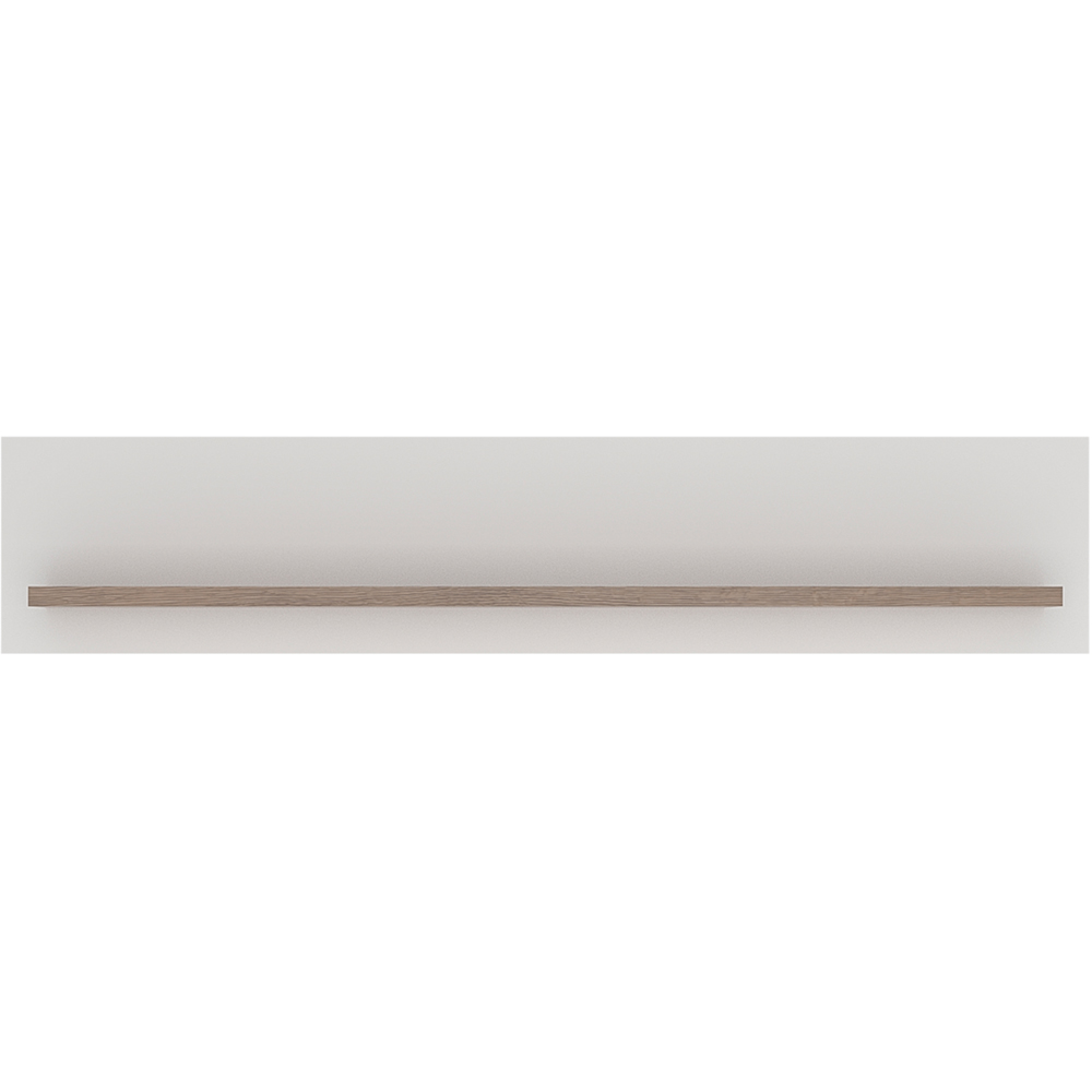 125 cm Wall shelf. This handy 125 cm wide wall shelf is ideal for family pictures and treasures. Warm and yet cool living and dining collection in white High Gloss with San Remo Oak inset.
