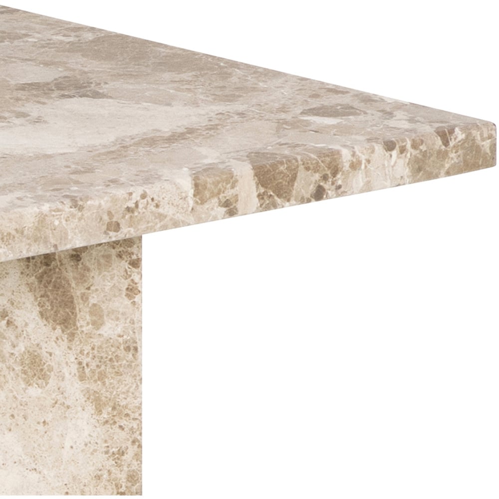 Timeless coffee table with rectangular latte brown marble top and V-shaped base. Unique stone variations add sophistication, making it a lasting statement piece.
