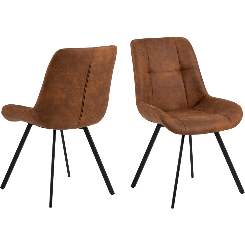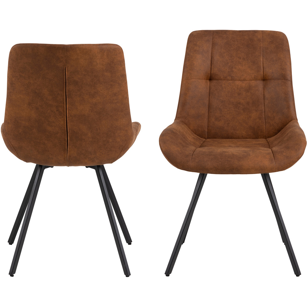 Indulge in the comfort and style of our dining chair, upholstered in sumptuous Preston fabric in a warm camel shade. The chair's base is crafted from matte black steel, and it features distinctive square stitching and zipper detail for a touch of sophistication. This set of two chairs will add a refined look to any dining setting.