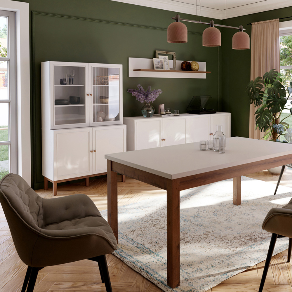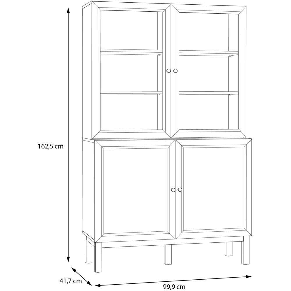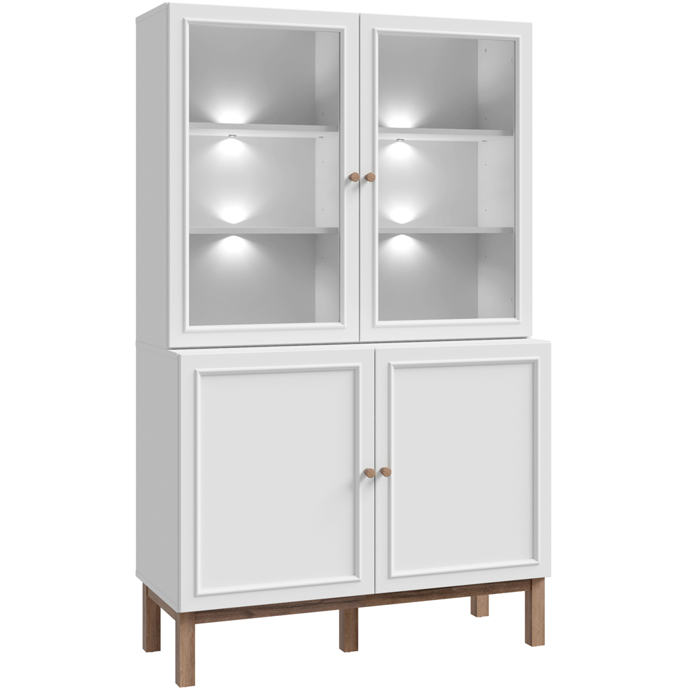 Display your treasures with the Wensley Display Cabinet in Light Grey and Oak. Featuring a modern design, LED lighting, a soft-closing system, and elegant wooden knob handles. It also comes with two normal doors and two glass doors.