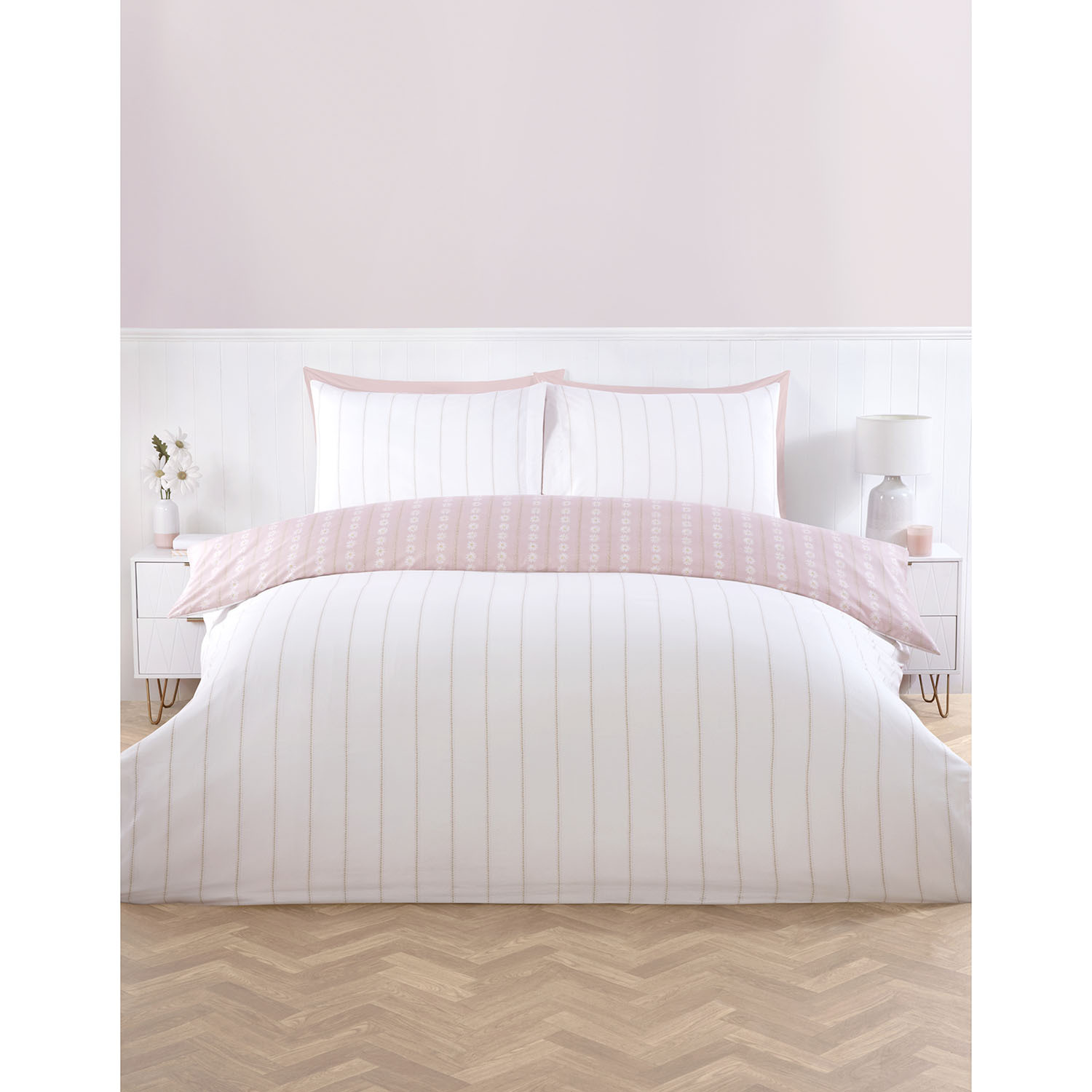 Add a touch of natural charm to your space with the Florie Duvet Set. This duvet set is adorned with lovely floral patterns against a blush pink backdrop to make your bedroom more colourful and lively. It's soft to the touch and cosy, perfect for snuggling up during chilly evenings while enhancing your decor.