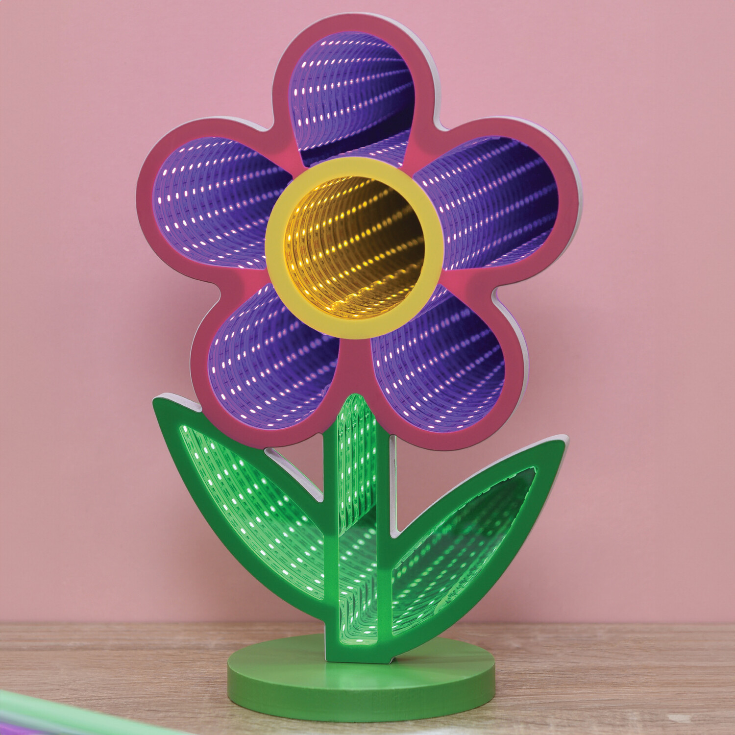 Brighten up any space with the Flower Infinity Light, a charming and eye-catching decor piece. Featuring a cute flower design, this infinity light provides a mesmerising glow that adds warmth and style to any room. The soft green, pink and yellow hues make it a delightful accent for bedrooms, living areas, or cosy corners. Its 180-centimetre cable offers added convenience, making it an excellent lighting solution for any room.