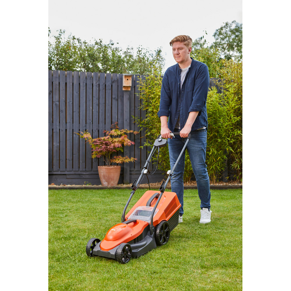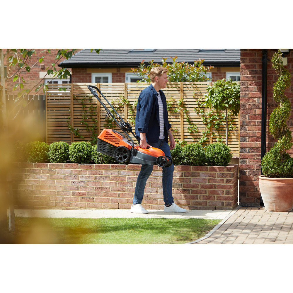 Effortlessly maintain your small garden with the Flymo SimpliMow 320V Electric Rotary Lawnmower, designed specifically to make lawn care as simple as possible. This compact yet powerful mower is equipped with a 1300W motor and a 32cm cutting width, making it ideal for smaller gardens. It features a substantial 30L grass box with a vision window, allowing you to see when it's time to empty without any guesswork. The convenient cable storage hooks and central handle enhance its user-friendliness, ensuring easy storage and portability, while the soft grip handles provide additional comfort during use.