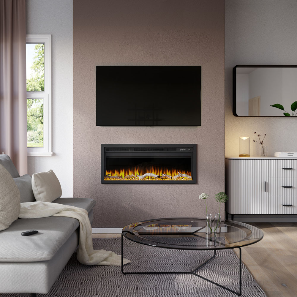 Enhance your living space with the Sasanoa Electric Fire, a beautifully sleek landscape-oriented heater that effortlessly combines warmth with contemporary style. Ideal for media wall setups, this electric fire offers simple, one-sided installation and can be operated conveniently via a remote or the built-in control panel, making it a perfect blend of functionality and elegance for any modern home.