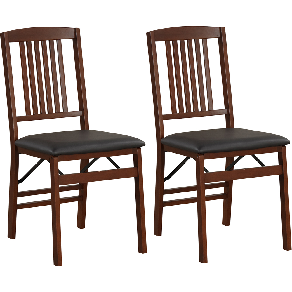Elevate both the functionality and style of your space with the Costway Set of 2 Brown Upholstered Folding Dining Chair. These chairs are upholstered in skin-friendly PVC leather that not only exudes a sophisticated vibe but is also a breeze to maintain. The padded seat and ergonomic backrest ensure maximum comfort during extended dining sessions, and the solid rubberwood frame provides a durable and sturdy base. Ideal for those with space-saving needs, these chairs can be easily folded and tucked away, making them perfect for both everyday use and special occasions.