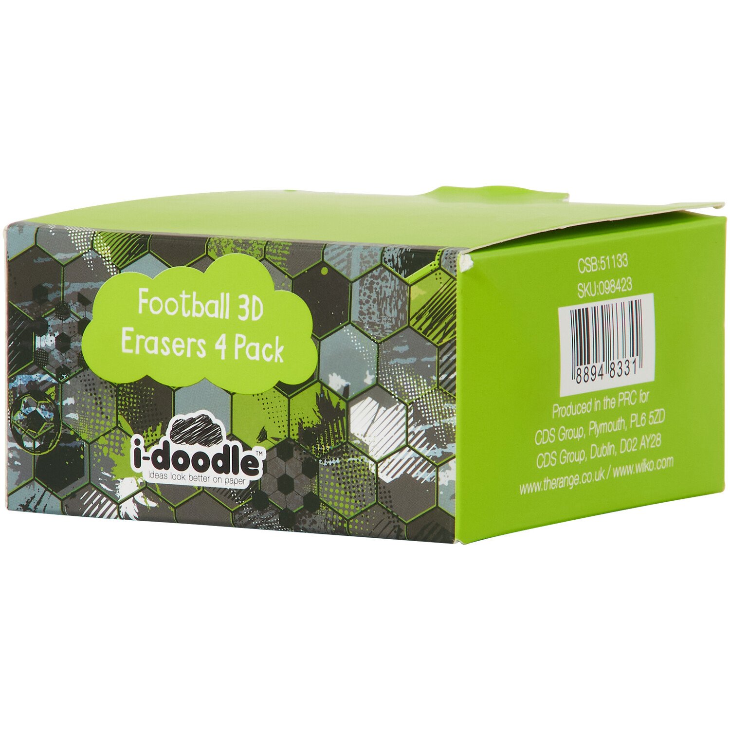 Functional and playful, this Pack of 4 Football 3D Erasers is a must-have in a fan's stationery set. Each eraser is crafted to look like a miniature football, adding a unique and fun element to your desk. Perfect for home, office or school use, these erasers are suitable for both professionals and students. Ideal for correcting mistakes, they are great as classroom rewards, party favours and more.
