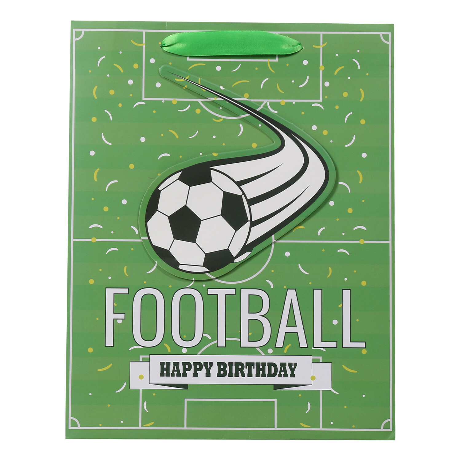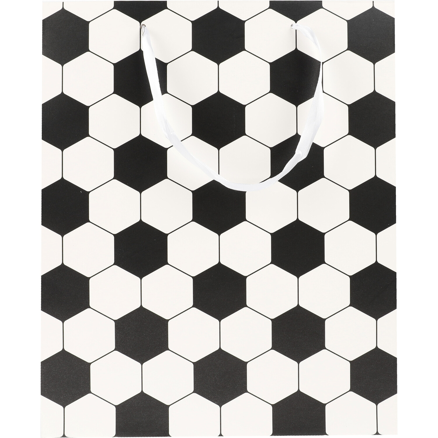 Ideal for storing and transporting the perfect gift for a loved one, this Football Birthday Gift Bag is sure to impress any football fanatic. Helping you to celebrate in style, this bag has been printed with a design inspired by the classic monochrome football, and features coordinating handles for easy carrying. It's the ideal size for a variety of gifts - even the awkwardly shaped ones!