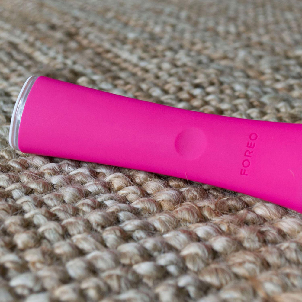 FOREO Espada Pro-level Acne Treatment Device for Dry Skin, Magenta. ESPADA is an FDA-cleared medical device clinically proven to quickly and effectively treat acne-prone skin. It combines laser-focused blue LED light and T-Sonic pulsations to destroy acne-causing bacteria deep in the skin. Reduce blemishes and inflammation in no time, while regulating sebum to prevent future breakouts. Give your skin a clean start and feel the confidence of a beautifully clear, smooth complexion. Target, treat, and terminate acne at home. ESPADA is an FDA-cleared medical device that combines blue LED light and T-Sonic pulsations to treat acne before and during a breakout. It's non-invasive, pain-free, and fights acne, pimples, blemishes, inflammation, dark spots, and clogged pores.
