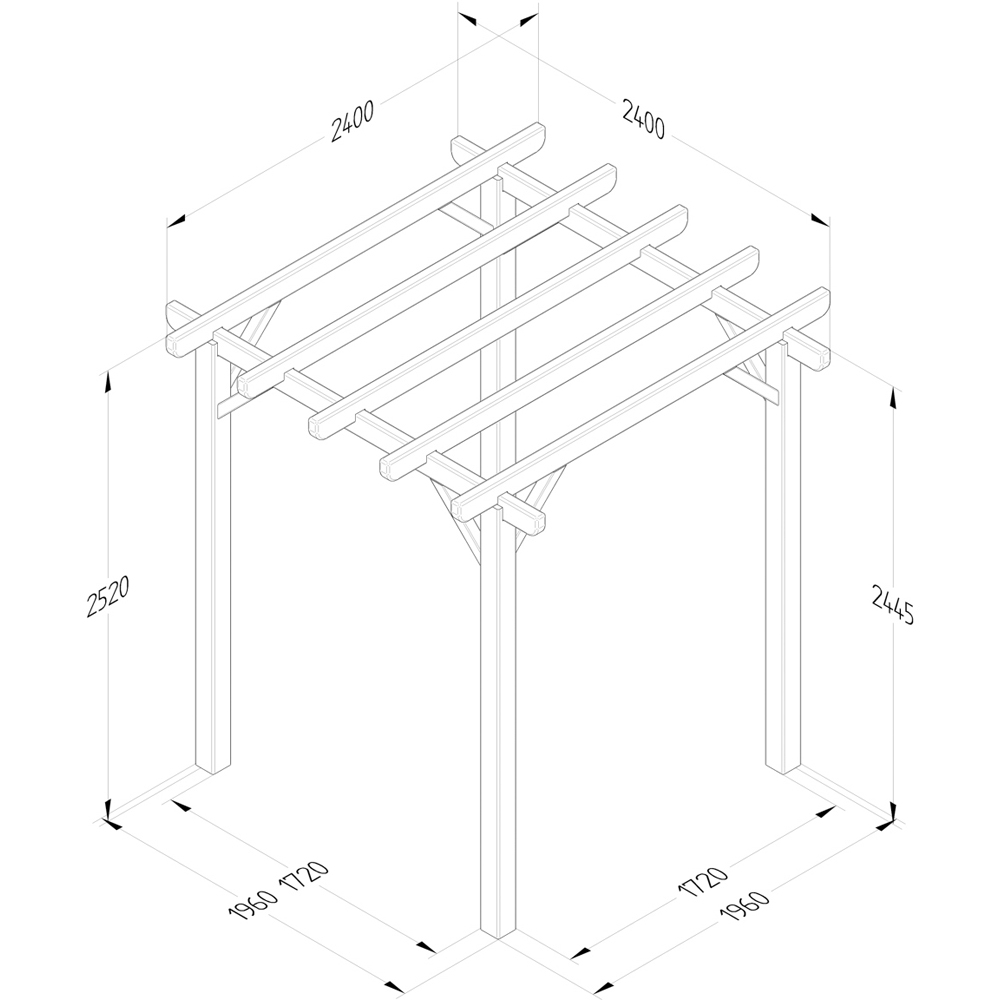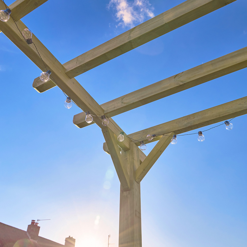 Boasting a premium build that offers years of garden design style, the Premium 2.4m Ultima Pergola is the perfect garden feature to define your outdoor dining area, demarcate a garden pathway, or provide a shady seated nook. This premium pergola from Forest Garden is our most robust wooden pergola yet. Manufactured from pressure-treated timber, the pergola comes with a 15-year guarantee against rot and fungal decay. To keep the pergola secure in all weathers, the posts can be sunk into the ground. Please Note: Orders to the following postal codes may be subject to longer leads than advertised: