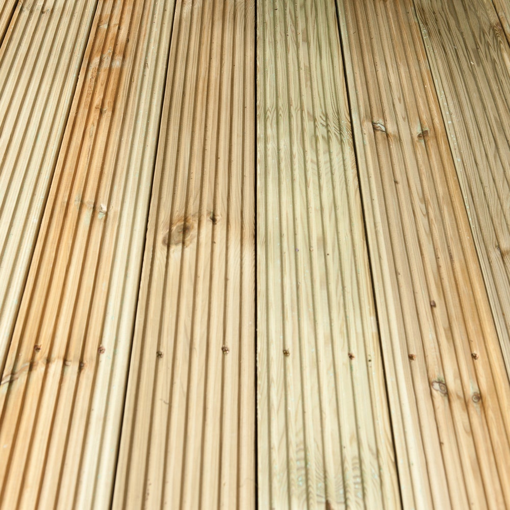 A solid, traditionally styled vertical board with a ridged profile, the Forest 2.4m Value Deck Board Pack is perfect for creating a decking area in your garden. Made with a natural colour, this decking blends into most garden settings, a great addition to any home. Manufactured from pressure treated, FSC certified timber, this decking is a great place to enjoy the outdoors.
