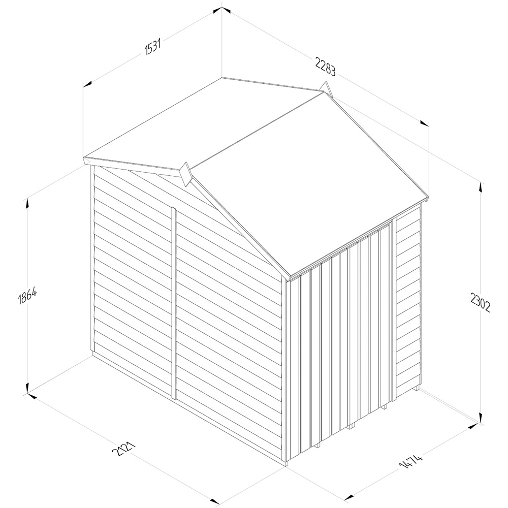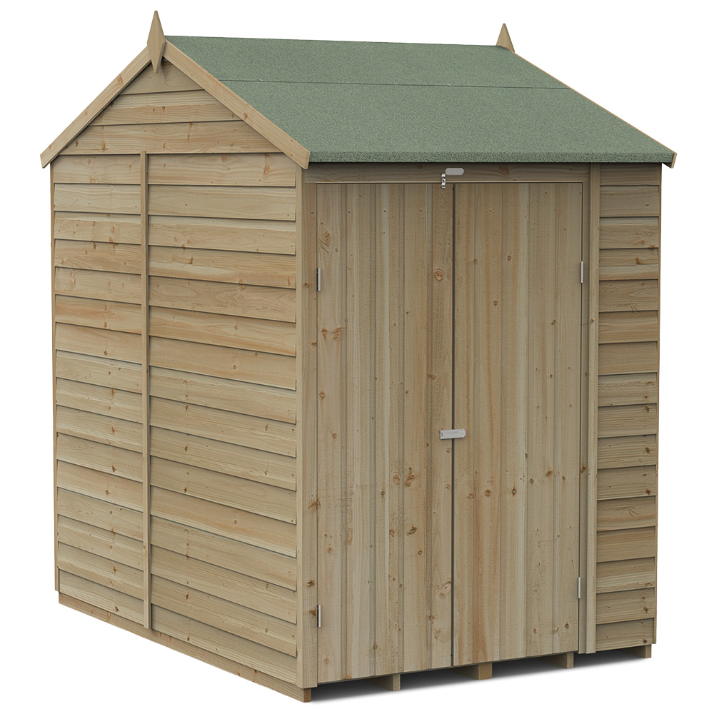Store your logs or garden accessories safely with this 4LIFE 5 x 7ft Double Door Overlap Pressure Treated Reverse Apex Shed by Forest Garden. This shed features an improved design with modular panels. Its reverse apex roof makes it ideal for positioning against a wall and allows the interior space to be used for its most significant storage potential. Supported by 30%-thicker framing, it is built using straight-cut seven mm boards that overlap to give flexibility, allowing natural movement of the timber and aiding rainwater run-off. The pressure treatment that has been applied provides a 25-year anti-rot guarantee, giving you maintenance freedom and eliminating preservative treatment. Compared with standard sheds, this garden shed features a solid timber floor, allowing for storing heavier items. The roof of this pent shed is made from a hardwearing eight mm solid sheet and finished with a green mineral felt cover for complete weatherproof protection. It also features a double-Z frame to increase strength and prevent door movement. The security is enhanced with hidden hinges and a padlock-ready simple and secure hasp with a staple latch to keep valuable items safe (padlock not included). Its door can also be fitted with a left or right-hand opening, depending on your choice. The shed has shatter-proof PET glazing, which is more secure than traditional glass and does not yellow or fade over time. This wooden shed will look good in any garden with its conventional apex roof, smooth-planed barge sheds, and diamond-shaped finial. It is handcrafted in the UK using FSC-certified timber and comes with a complete set of fixings with clear instructions to help you achieve a straightforward assembly. Also, remember to build lean-to at the same time as the shed. This shed is delivered free to most UK addresses, using Forest Garden's White Glove Delivery Service, so it will be dropped off wherever you want it in your garden, with all packaging removed. Please Note: Orders to the following postal codes may be subject to longer leads than advertised: