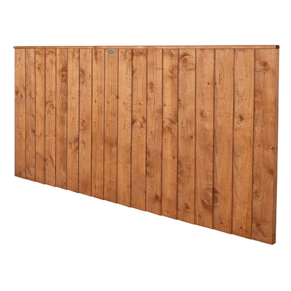 This 6 x 3ft Closeboard Panel from Forest Garden is a strong, sturdy, secure panel, perfect for privacy and security along garden boundaries. It features thick overlapping square cut 8mm boards, arranged vertically and mounted to a perimeter frame to make an attractive-looking panel. The durable panel is reinforced with a 45mm central batten on the back and is finished with a profiled panel cap. The heavy-duty panel, manufactured from FSC-certified timber, is dip-treated to give a 10-year anti-rot guarantee and has a golden brown finish. Please Note: Orders to the following postal codes may be subject to longer leads than advertised: