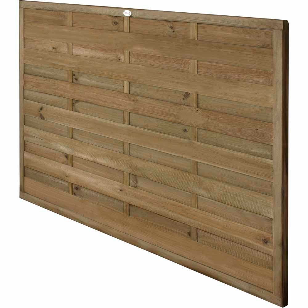 Make your garden more secure and private with this Europa Fence Panel from Forest Garden. The fence panel is a high specification decorative alternative to standard horizontal board fence panels. Its smooth-planed horizontally mounted boards with a grooved profile are arranged on either side of mounting battens in a staggered pattern. The high quality rebated frame with mortise and tenon joints gives the panel strength and longevity. Its low level 1.20m height makes it ideal for front garden boundaries or for mounting on top of a low-level wall. Made from FSC certified timber and pressure treated it offers a 15-year anti-rot guarantee. Best complemented when mounted to smooth-planed fence posts, this smooth-planed decorative panel will offer you some security and privacy while adding a touch of elegance to your garden. Size: 6ft x 4ft (1.8m x 1.2m). Please Note: Orders to the following postal codes may be subject to longer leads than advertised:
