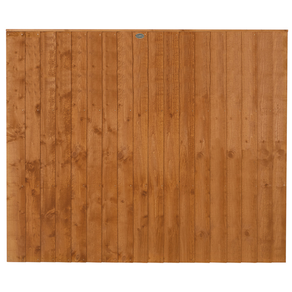 This 6 x 5ft Closeboard Panel from Forest Garden is a strong, sturdy, secure panel, perfect for privacy and security along garden boundaries. It features thick overlapping square cut 8mm boards, arranged vertically and mounted to a perimeter frame to make an attractive-looking panel. The durable panel is reinforced with two 45mm central battens on the back and is finished with a profiled panel cap. Manufactured from FSC-certified timber, the heavy-duty panel is dip-treated to give a 10-year anti-rot guarantee and has a golden brown finish. Please Note: Orders to the following postal codes may be subject to longer leads than advertised: