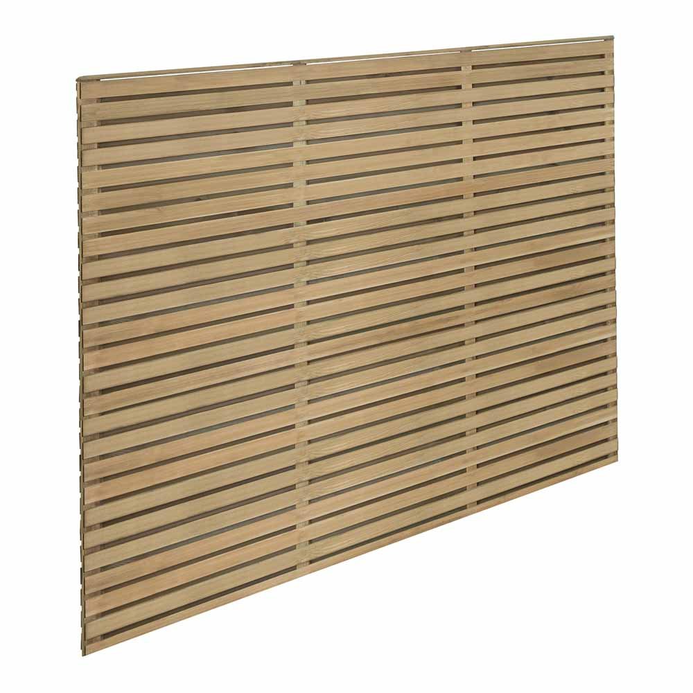 The 5ft Double Slatted Panel from Forest is a substantial and stylish panel with a contemporary look. It will give a modern feel to boundary fencing and will transform any garden. The panel features slats mounted alternately on the front and back of the panel. With this arrangement the panel offers privacy unlike single-sided slatted panels, whilst still letting some light and air flow through. This makes the panel equally suitable for boundary fencing or for use as screening or partitioning. The timber is Pressure Treated to give a 15 year Anti-Rot guarantee and the panel can also be used without gravel boards. The panel is Manufactured from FSC® certified timber. Available in 4 heights - 6ft (1.80m), 5ft (1.50m), 4ft (1.20m) and 3ft (0.9m)