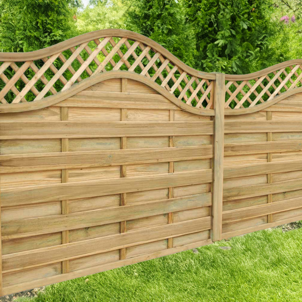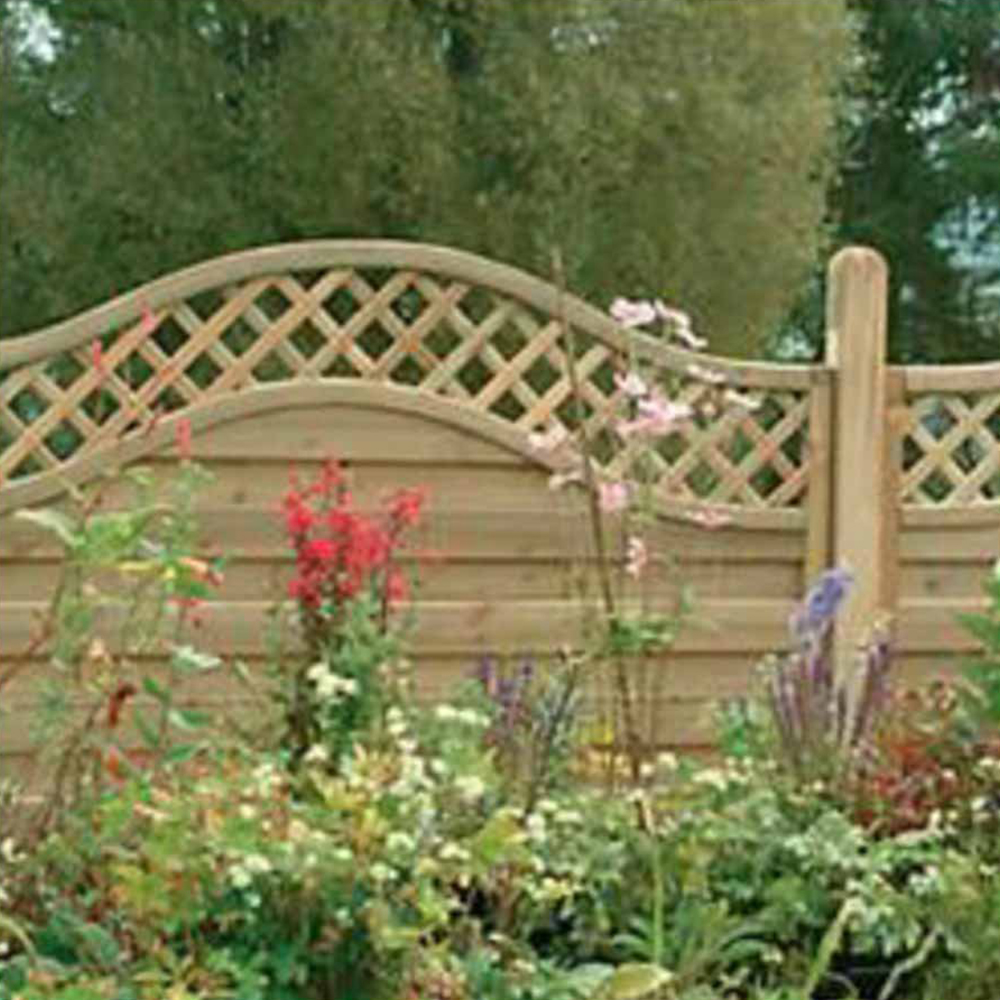 With its combination of great looks and build quality, the Prague panel from Forest is one of the most popular decorative fence panels in the UK. This 5ft panel has smooth-planed horizontally mounted boards which feature a grooved profile, the boards are arranged either side of battens in a staggered pattern then secured in a high quality rebated frame. The panel is then finished with an attractive diamond lattice top section framed in a wave pattern. With all these features and attention to detail these panels will transform the look of a garden or boundary. Made from FSC® certified timber and Pressure Treated to give a 15 year Anti-Rot guarantee. The panels can also be used without gravel boards. This smooth-planed decorative panel is best complemented when mounted to smooth-planed fence posts. Available in 4 heights - 6ft (1.80m), 5ft (1.50m), 4ft (1.20m) and 3ft (0.9m).