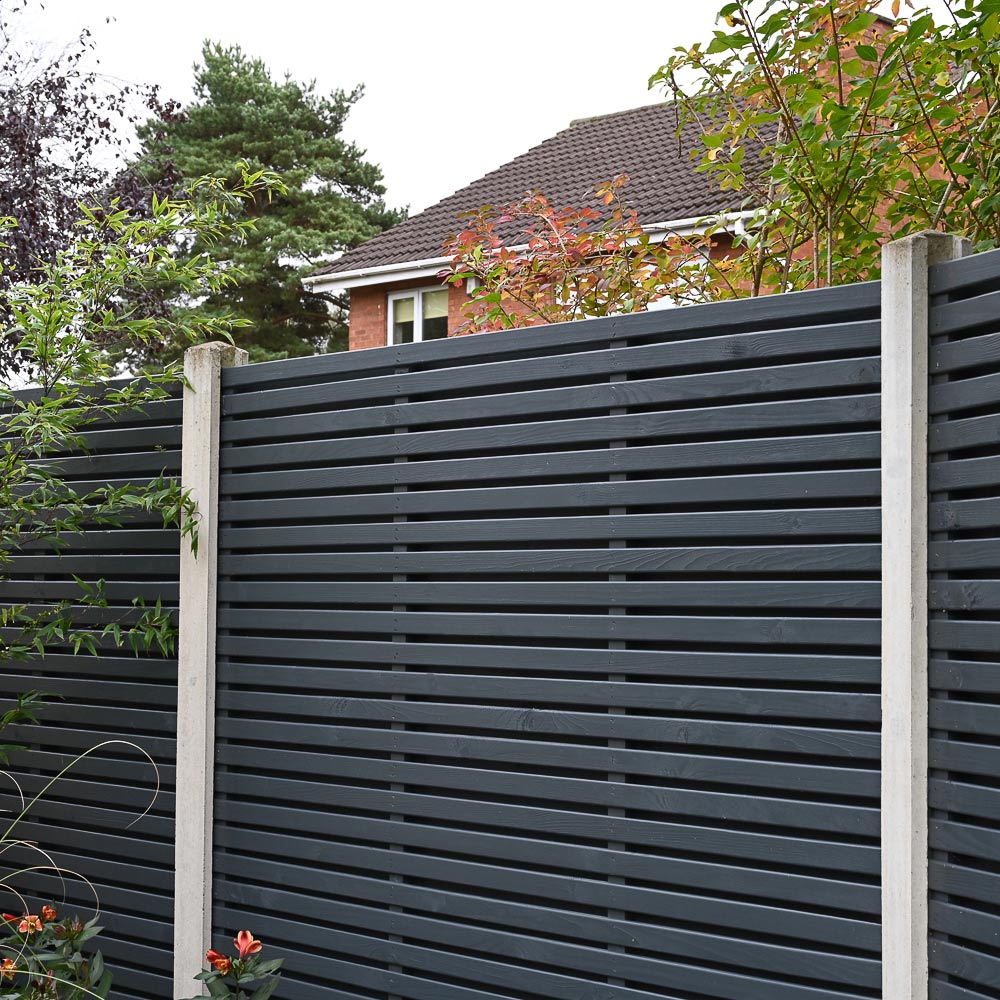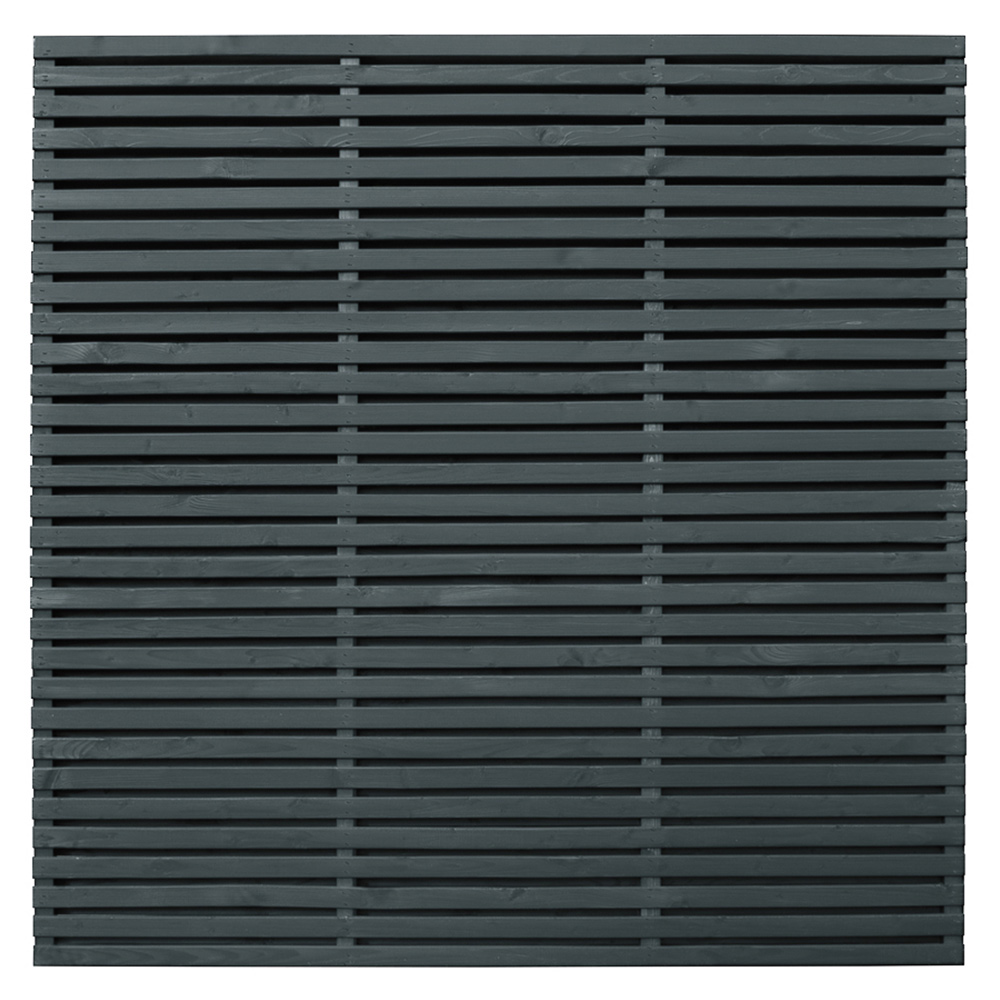 The 6 x 6ft Anthracite Grey Contemporary Slatted Fence Panel from Forest Garden comes pre-painted and is a great choice for creating a partition or as boundary fencing where full privacy is not required. This strong yet stylish panel will modernise any outdoor space and offers an instant match to buildings featuring this popular contemporary colour. Extra thick, 20mm slats mounted to a 34mm frame result in a total thickness of 54mm, making this a very substantial and robust panel. Manufactured from FSC-certified timber, the panel is pre-treated with an aqueous industrial wood preservative before painting and has a 10-year anti-rot guarantee. To maintain the finish, it is recommended that the panel be repainted after three years. Please Note: Orders to the following postal codes may be subject to longer leads than advertised: